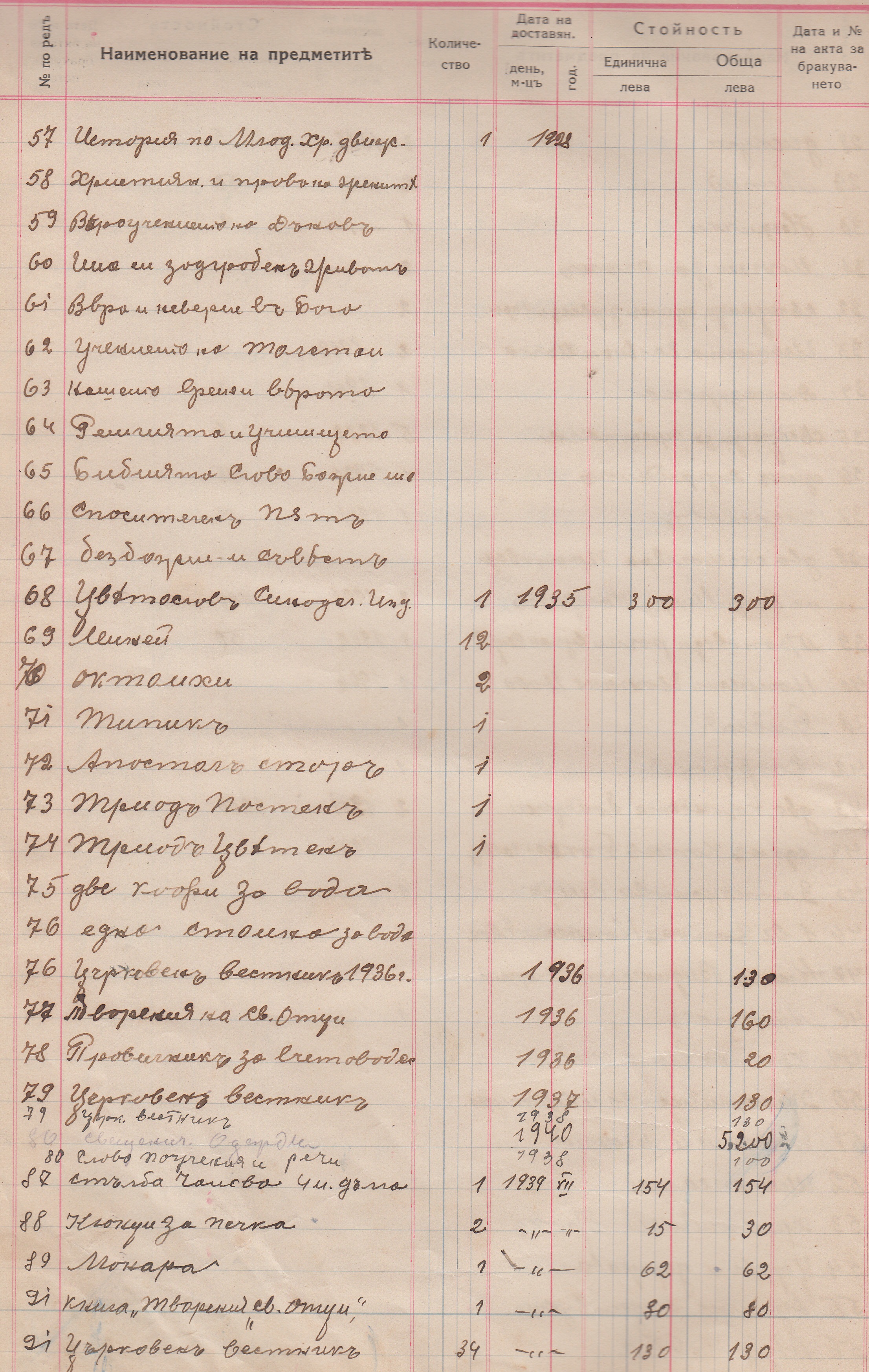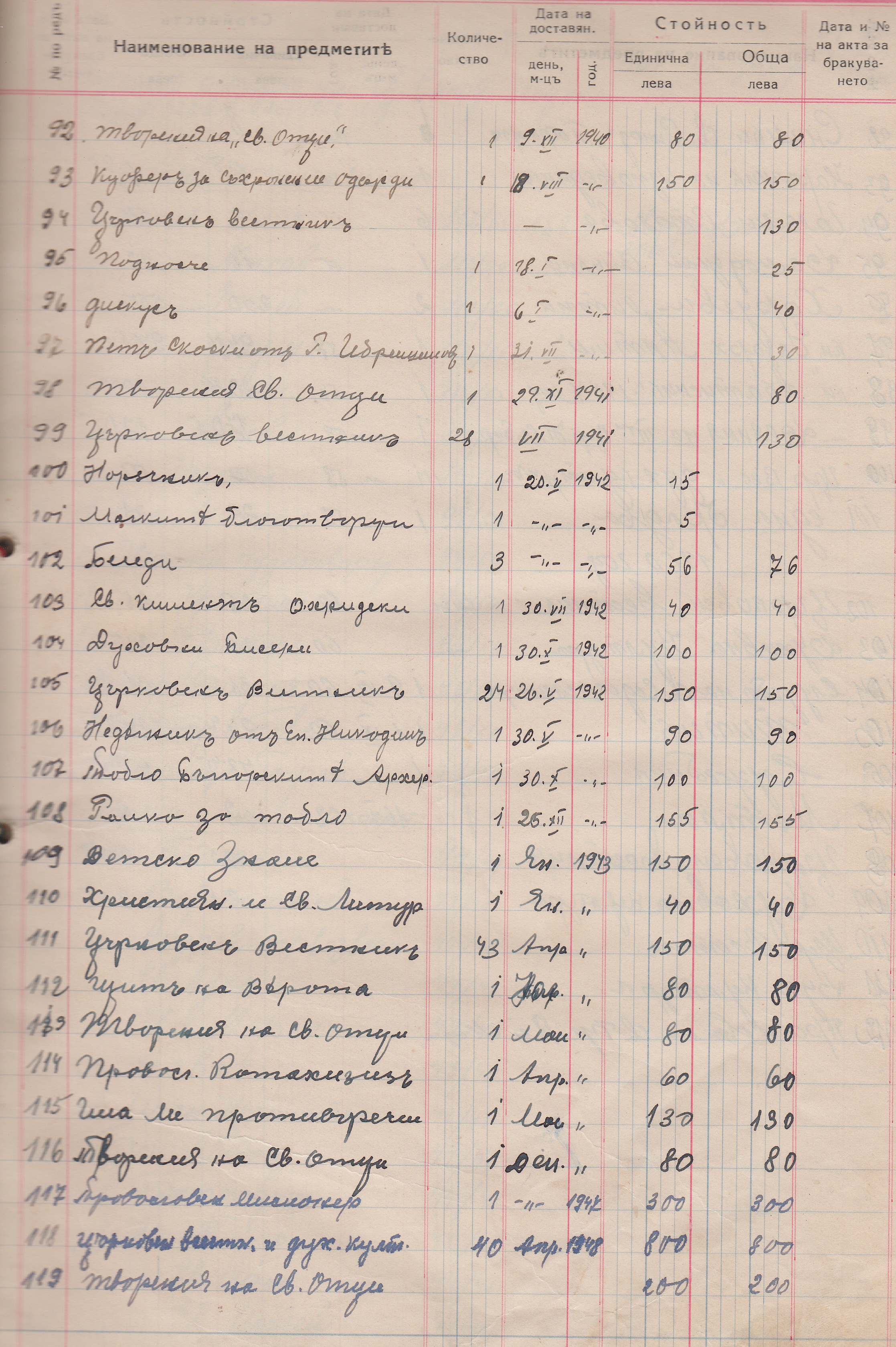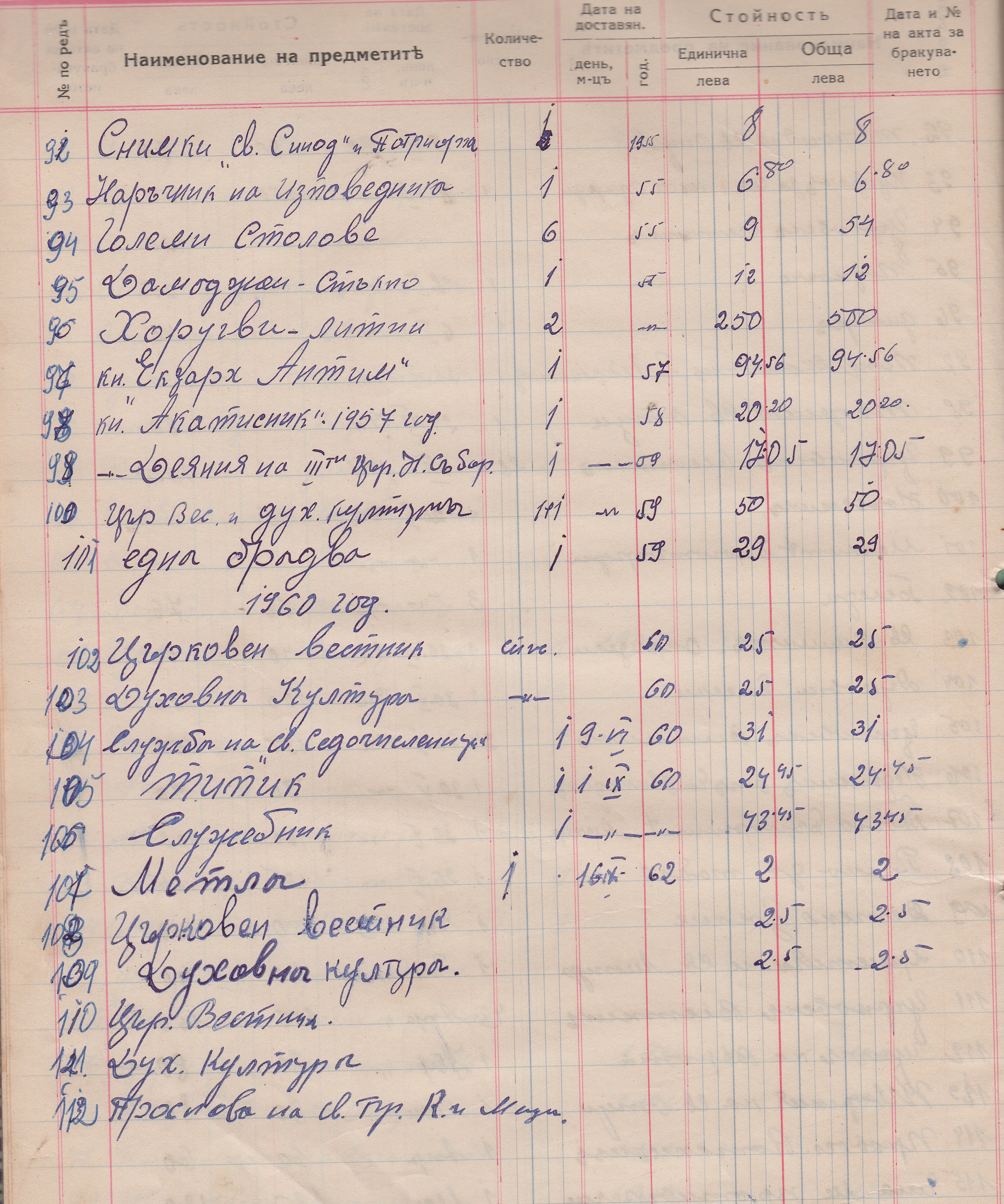 Всички тези книги и документите на църквата са събрани и е трябвало да бъдат предадени в архива в град Видин 1967 година. Но това не се е случило.