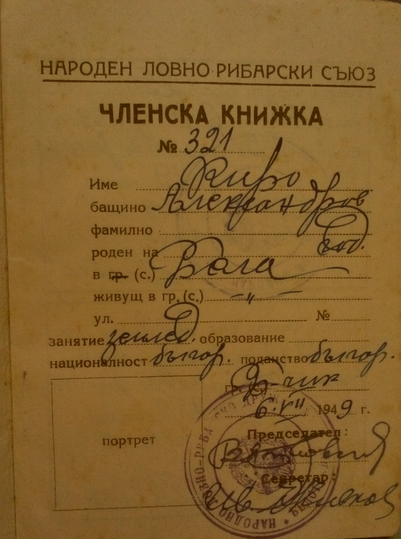 Членската книжка на ловеца от село Бела, Киро Александров Цветков.