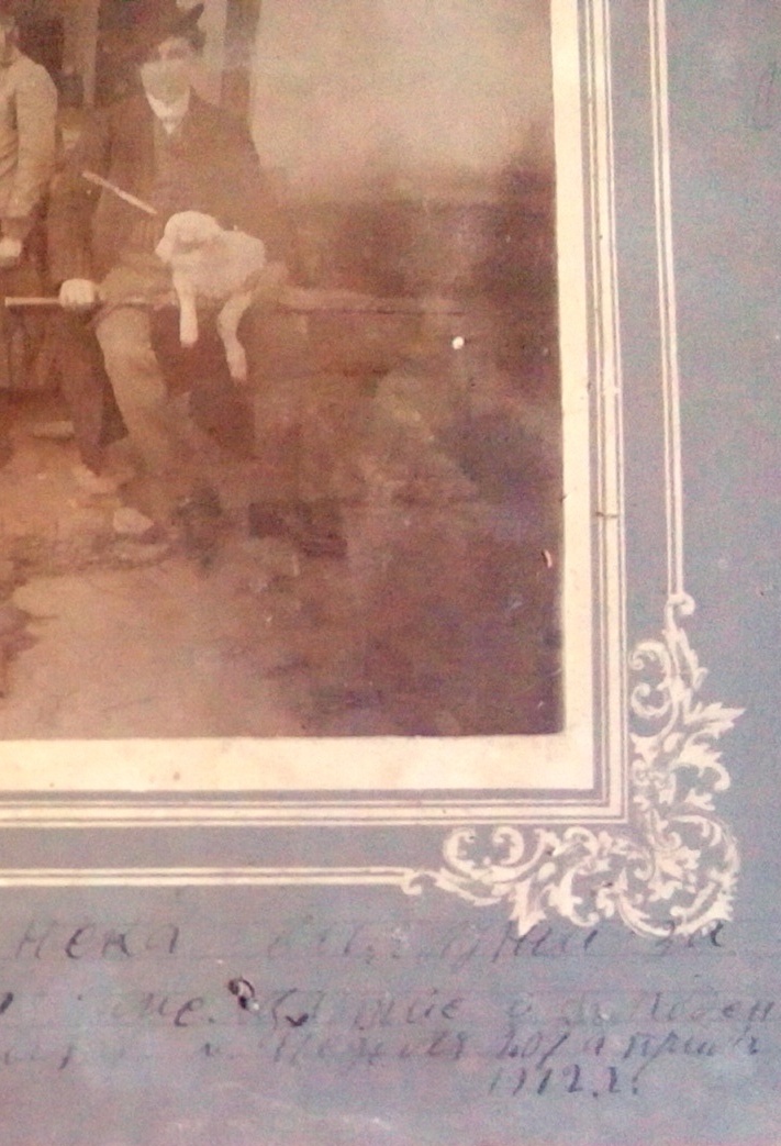Една снимка от 1912г. Човека с ловната пушка е учителя Вълчо Кръстев. Държи в ръцете си агне и пушката.