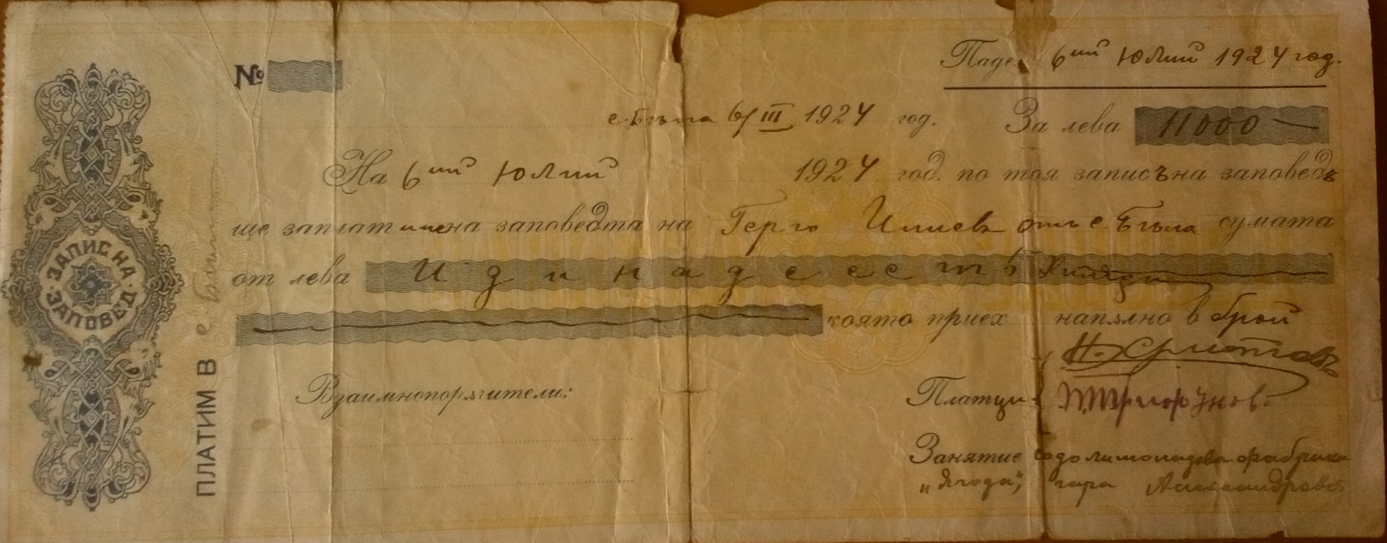 Записна заповед – Герго Илиев от село Бела