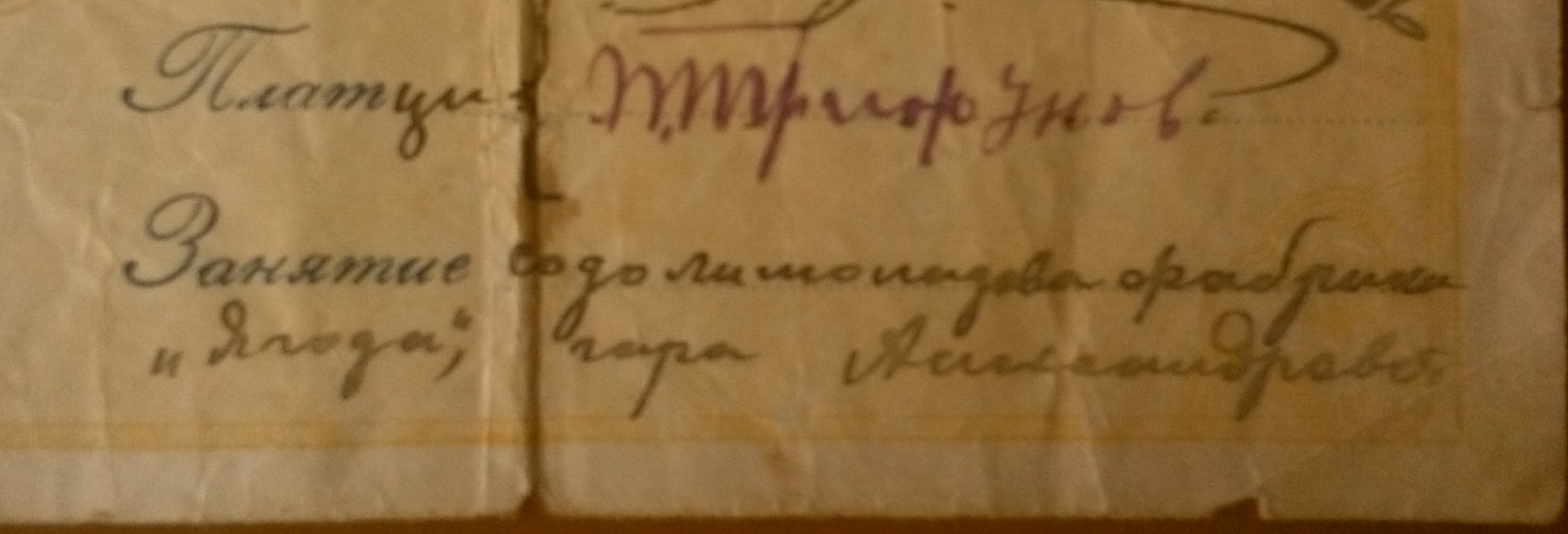 Платец Петър Трифунов собственик на Содолимонадената фабрика „Ягода“ гара Александрово