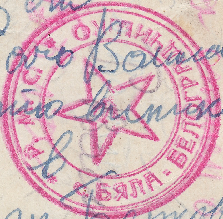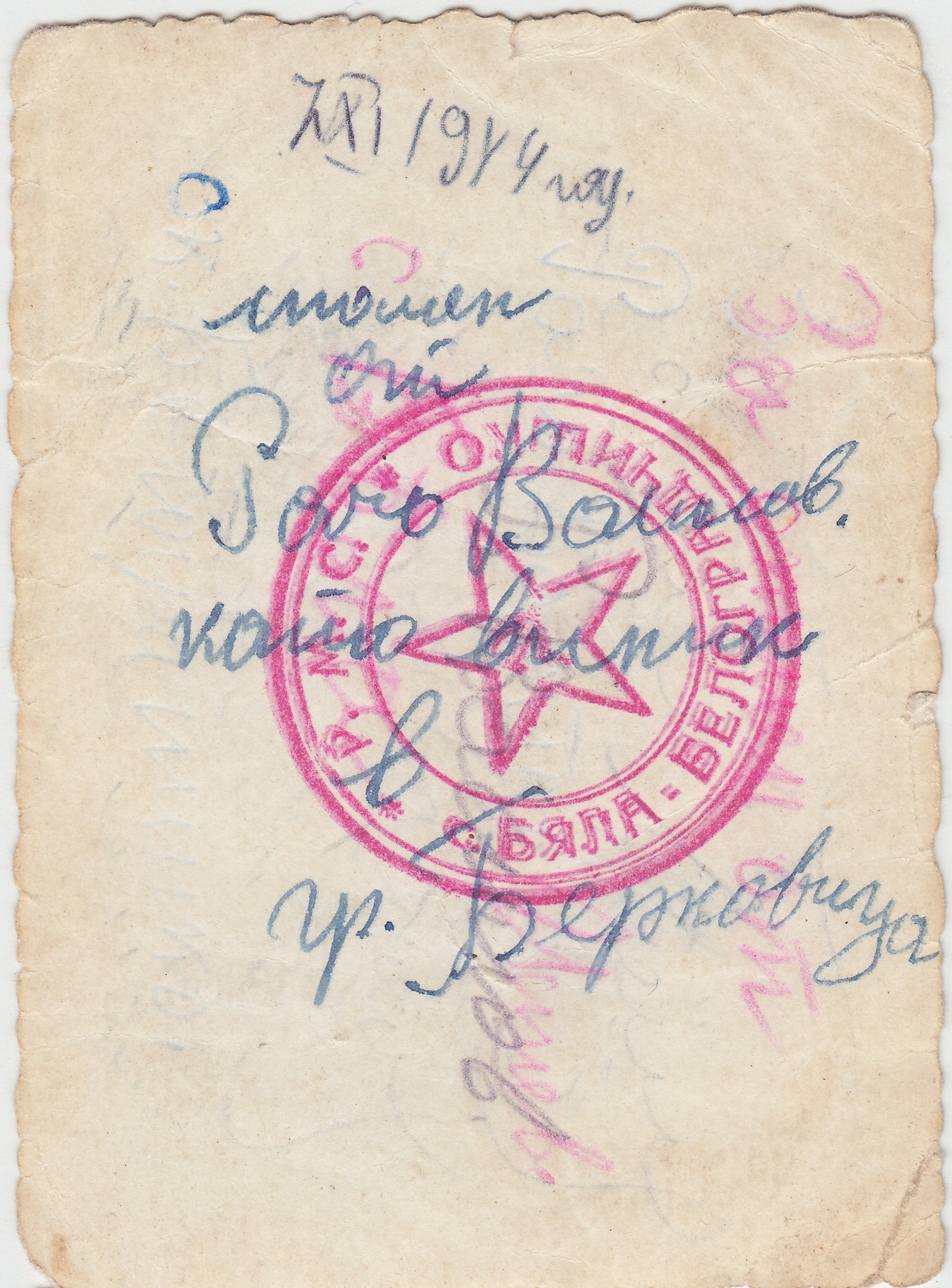 Снимка с печат на организацията Р.М.С. с.Бела – Белоградчишко 07.11.1944 год.