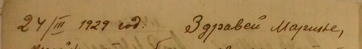 Едно писмо 27.03.1929 год. от Васил Маринов Кумитски /Васил Маринов Панов р.1907 г. – п.1973 г./ до Марин в Чехия.