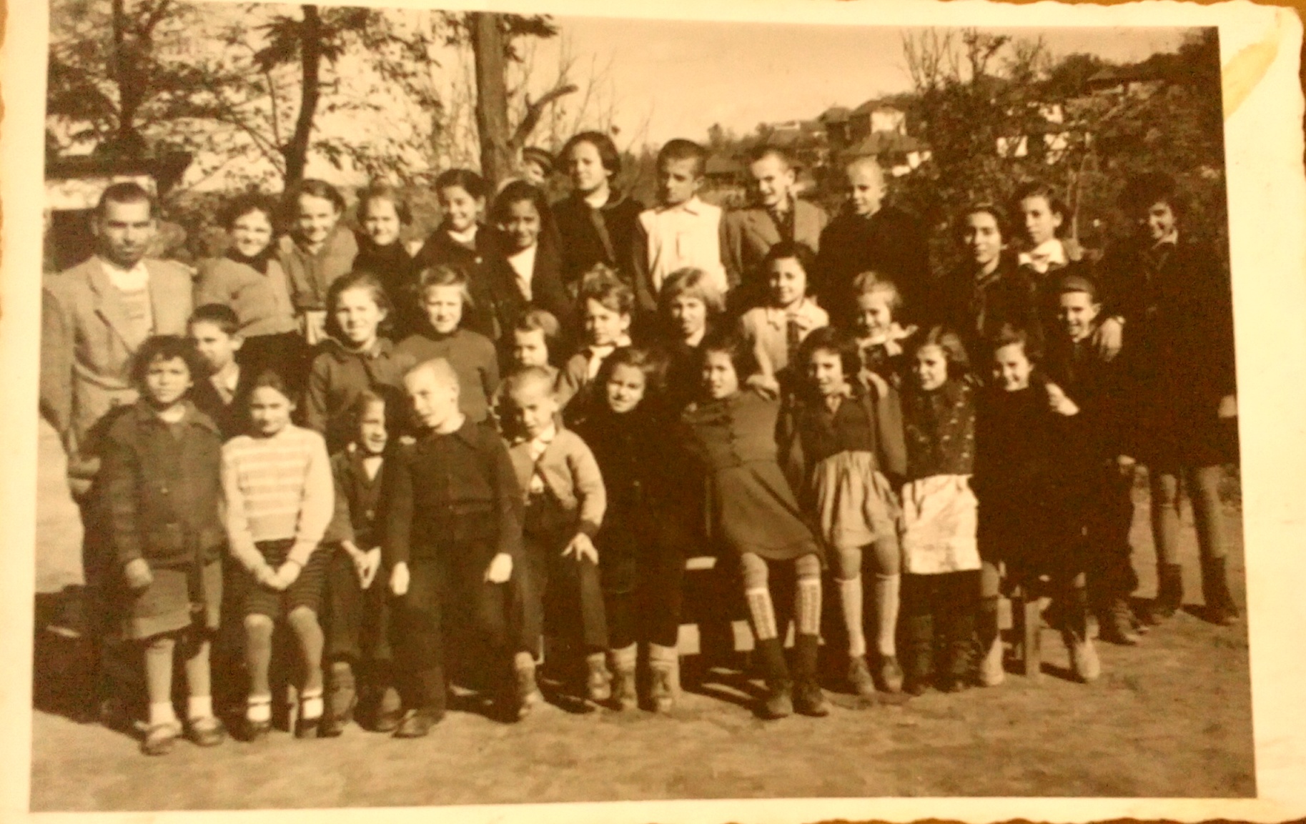 Снимката е в двора на училището между двете сгради.