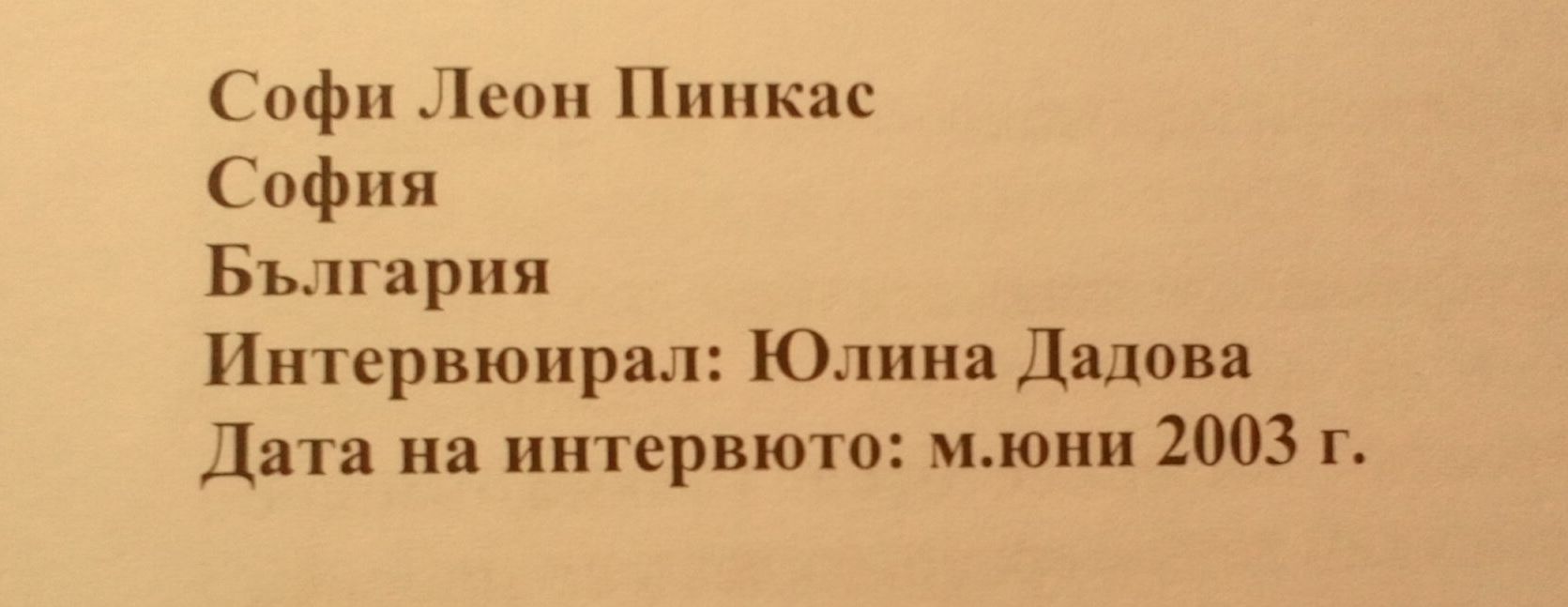 Спомени на София Леон Пинкас от месец Юли 2003 година.