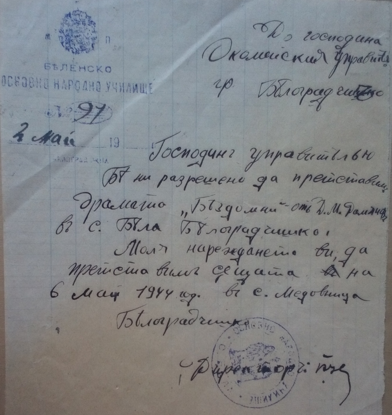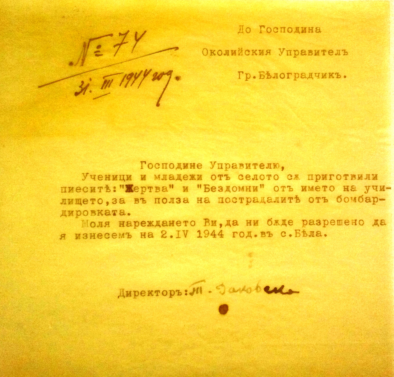 На 06.05 1944г. да се представи „Бездомни“ от Д.М.Дамянов в с.Бела
