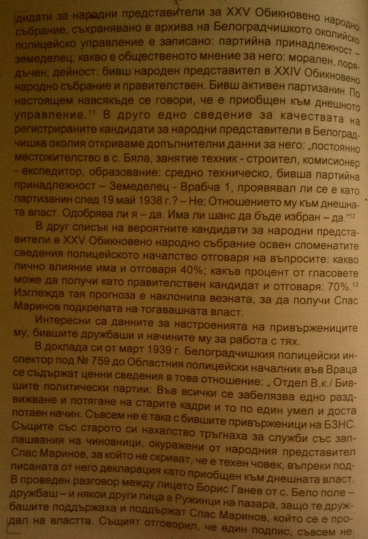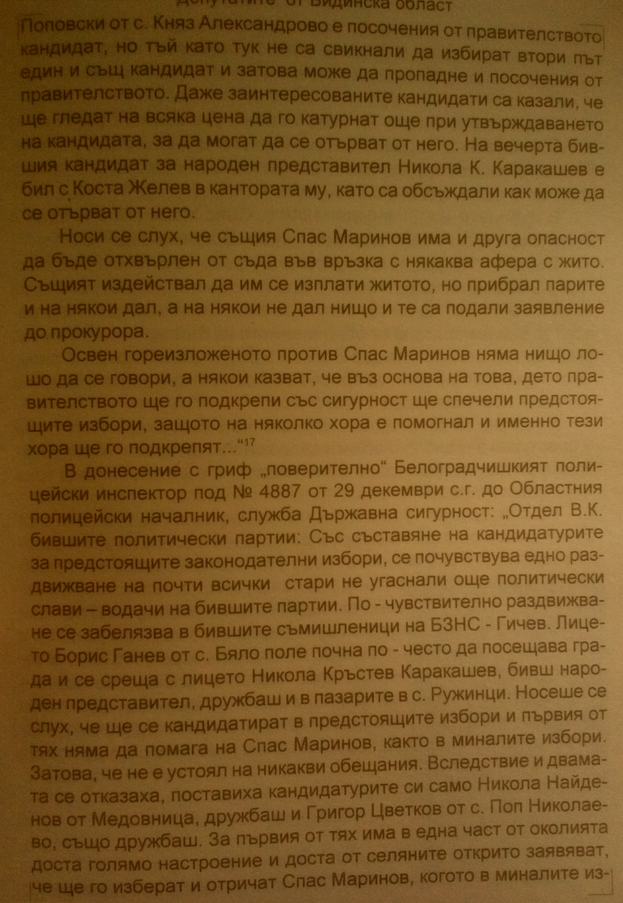 „постоянно местожителство с.Бела, занчтие техник – строител, комисионер- експедитор, образование: средно техническо, бивша партийна принадлежност – Земеделец – Врабча-1…..“
