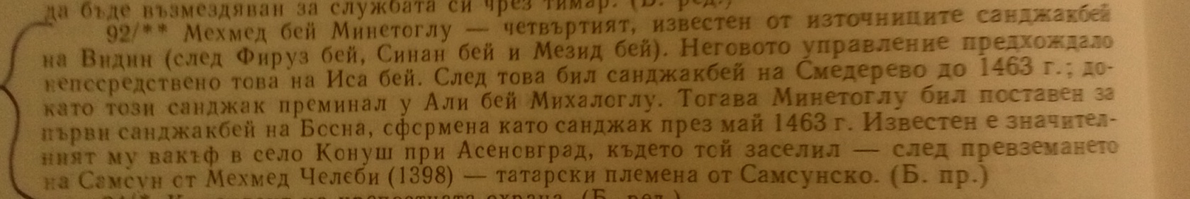 - Санджакбей на Видин – Иса бей Исхакоглу Тимариот и заим на Белоградчик /село/ Караджа Салих, притежава свещен знак. Военно задължен, лично като бюруме, джебелии 7, шатра 1, малка шатра, броня 1.