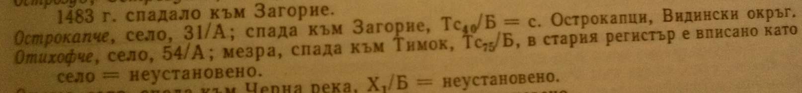 Село Острокапче – 31/А= спада към Загорие, Тс40/Б= с.Острокапци,Видински окръг.