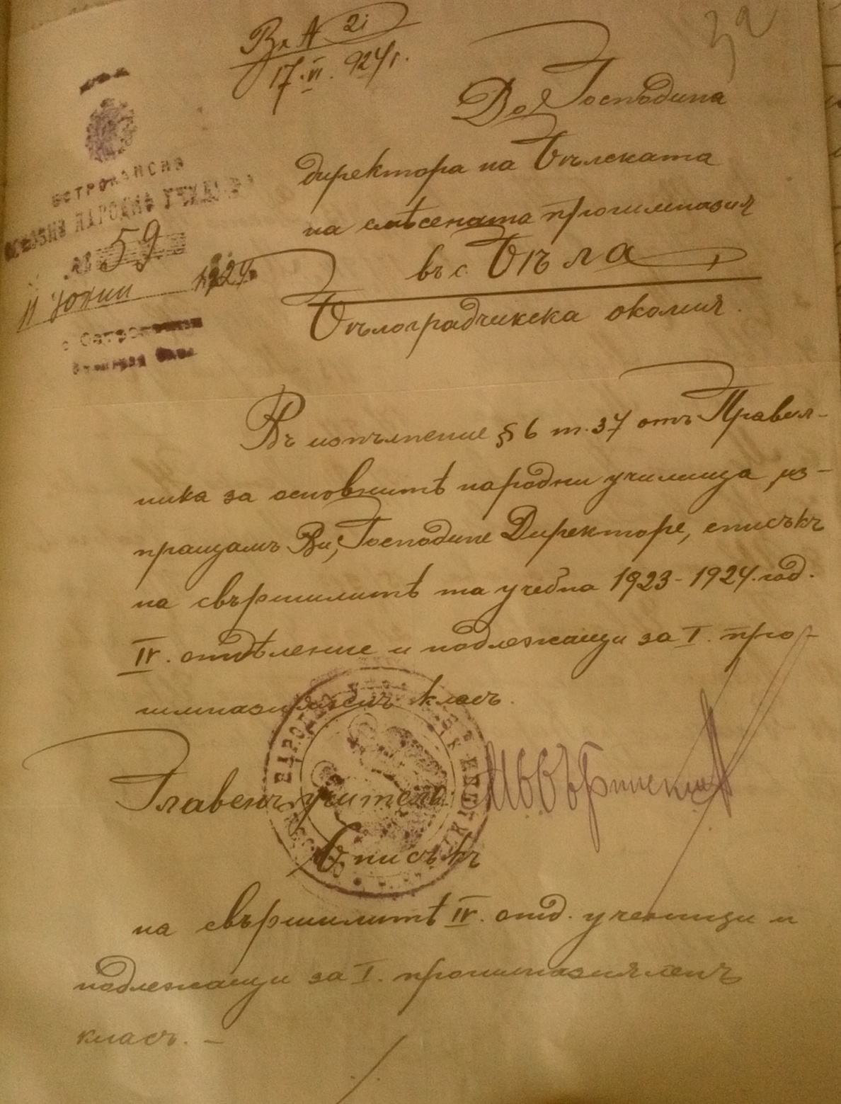 1924 год. Октомврий – Подписаните удостоверяват, че са получили покана да изпратят децата си в прогимназията.