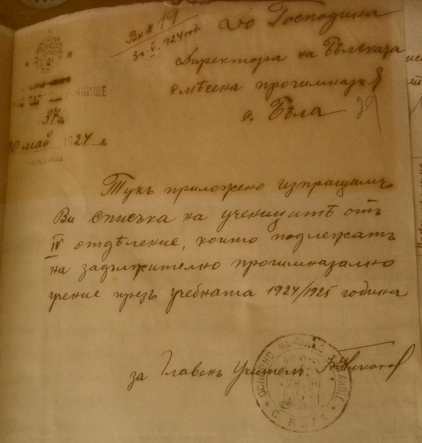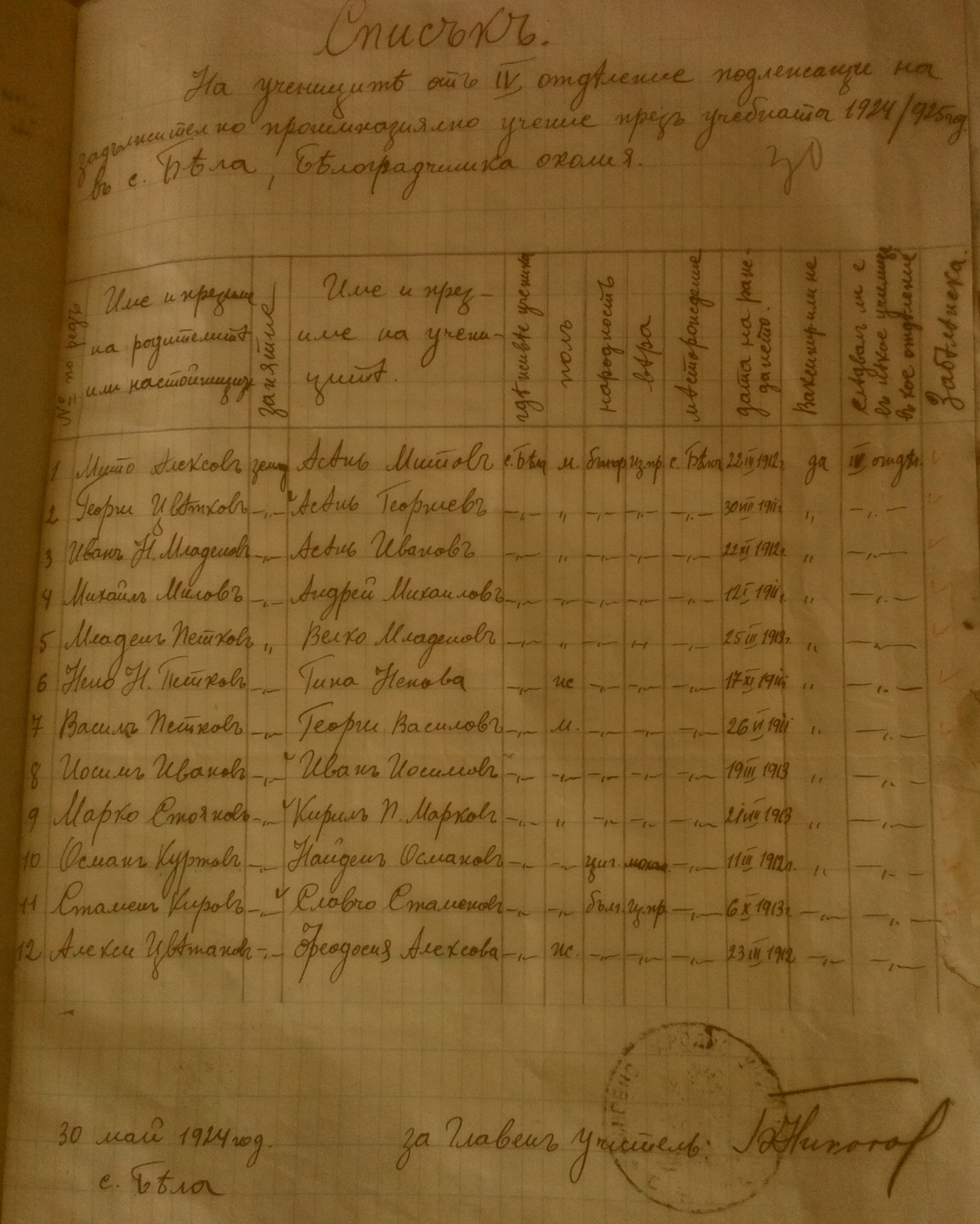 СПИСЪК за учебната 1924/25 година. Прогимназия село Бела.