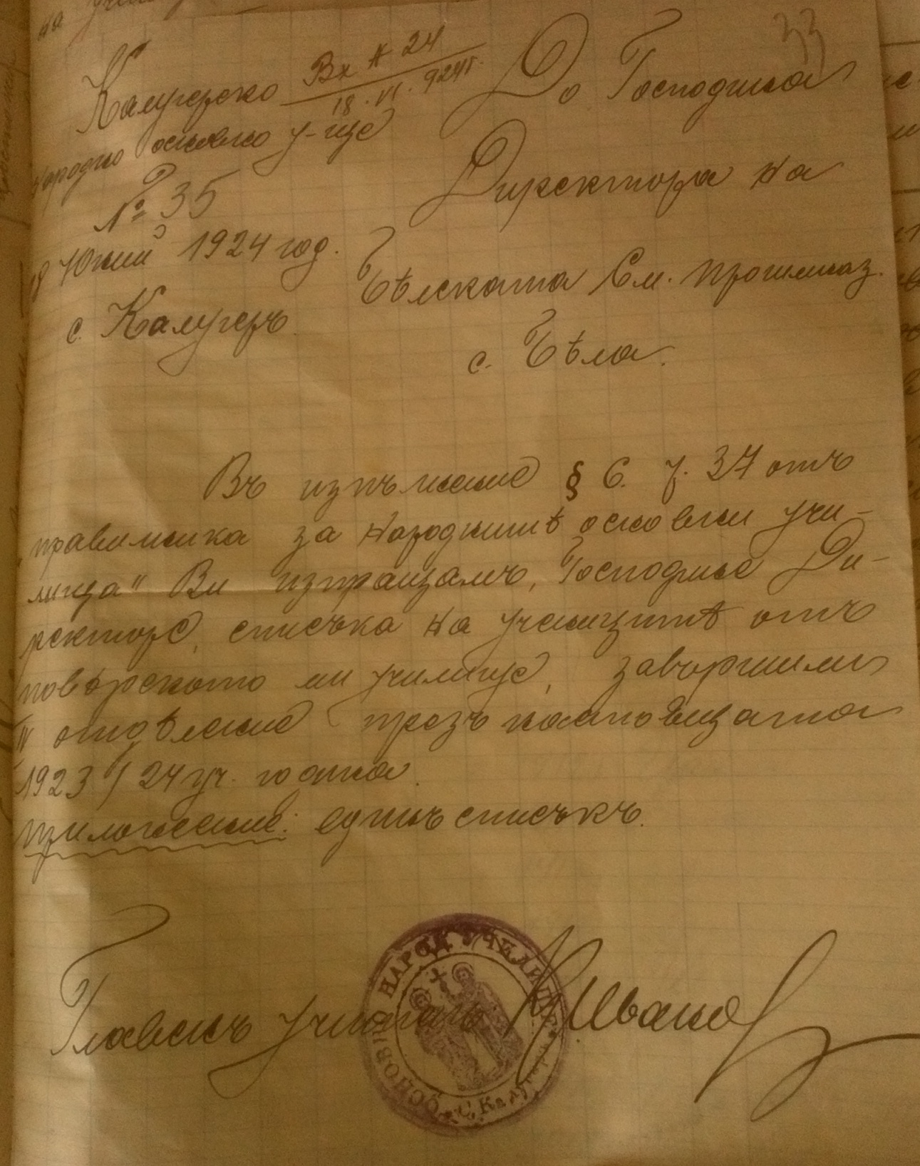 До Господина директора на Белската Смесена Прогимназия село Бела.