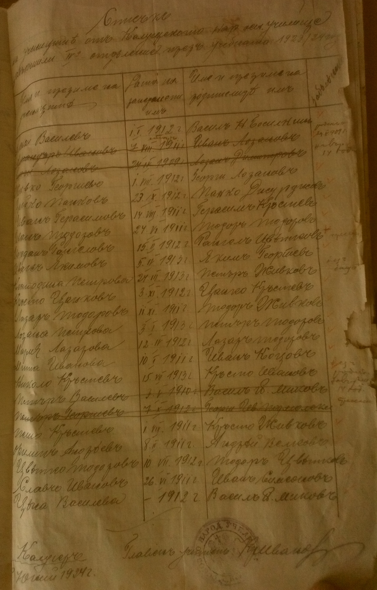 Списък на Учениците от Калугерското Народно Основно Училище завършили 4-то Отделение 18.06.1924 г.