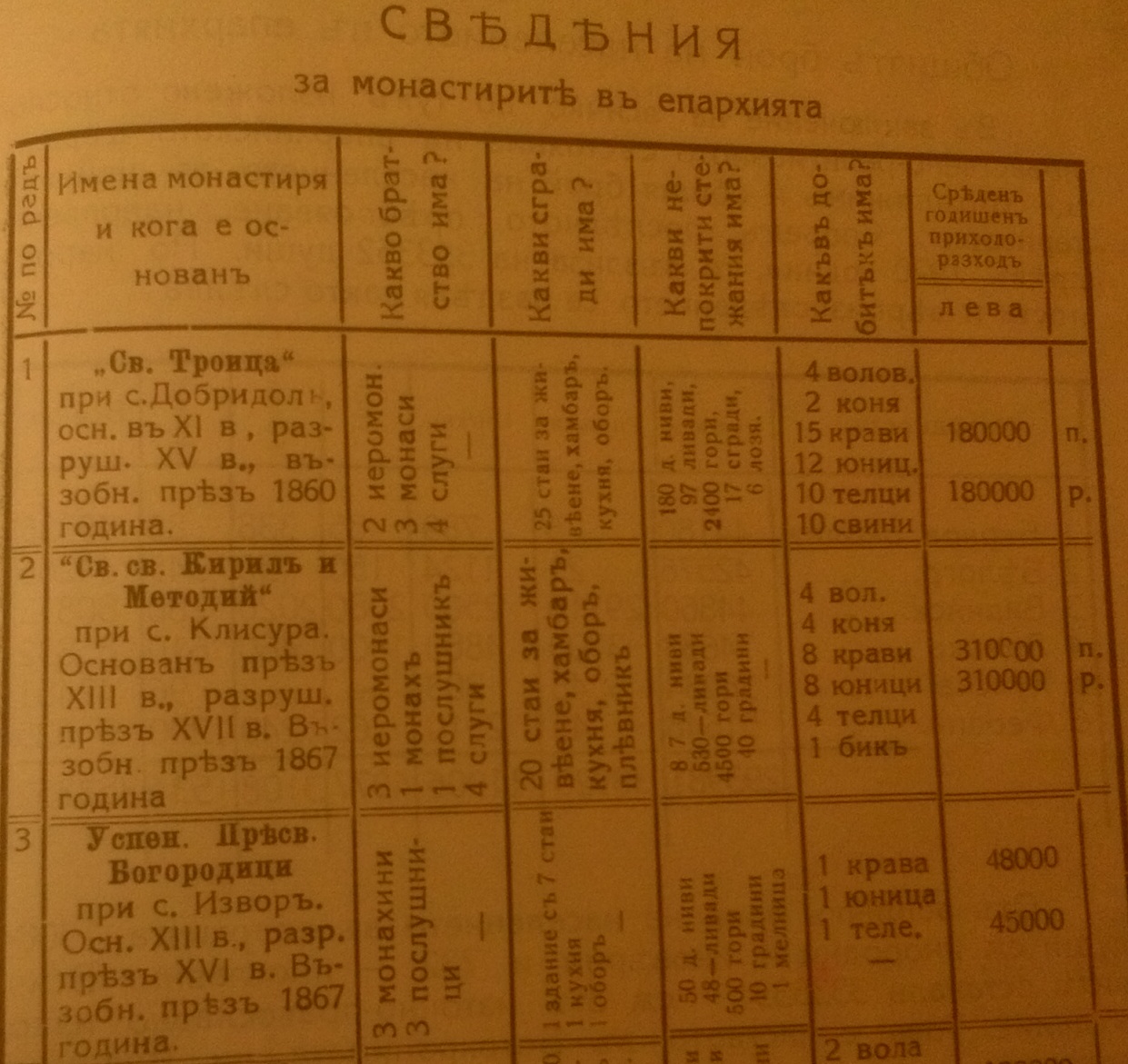 Сведения за манастирите:
