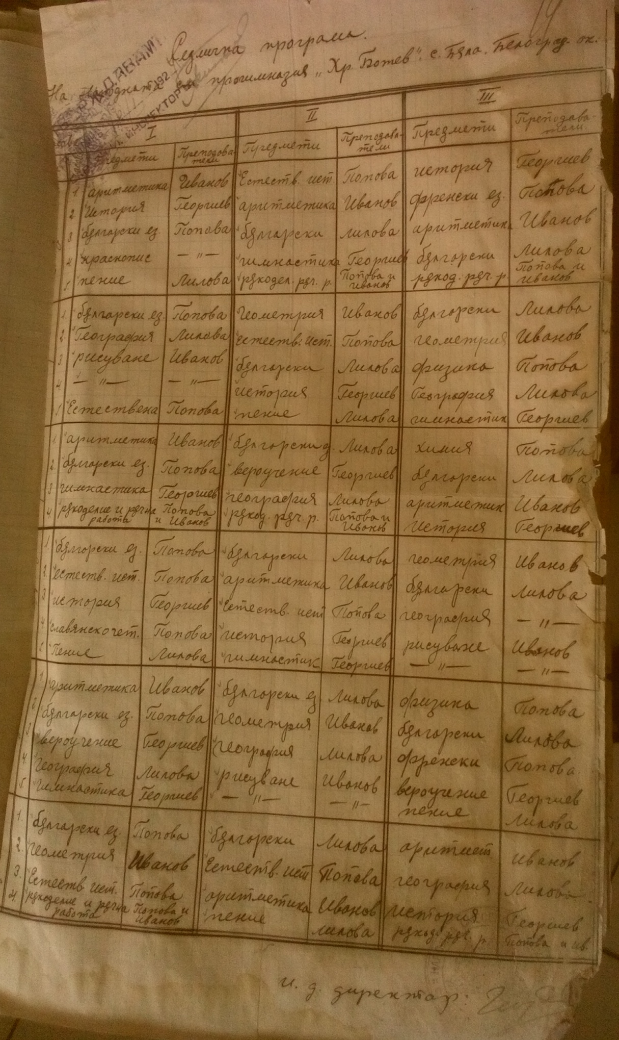 1924 год. 6 Януари – Седмична програма на Народната Смесената Прогимназия „Хр.Ботев“ с.Бела
