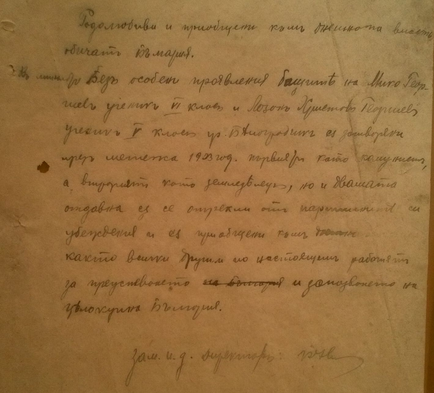 В миналото без особени проявления бащите на Мико Георгиев ученик от 6-ти клас и Лозан Христов Георгиев, ученик от 5 -ти клас гр. Белоградчик са затваряни през метежа 1923 год. (Участници в Септемврийското въстание). Първият като комунист, а вторият като земеделец, но и двамата отдавна са се отрекли от партийните си убеждения и са приобщени към днешната власт, както всички други по настоящем работят за преуспяването и запазването на целокупна България.