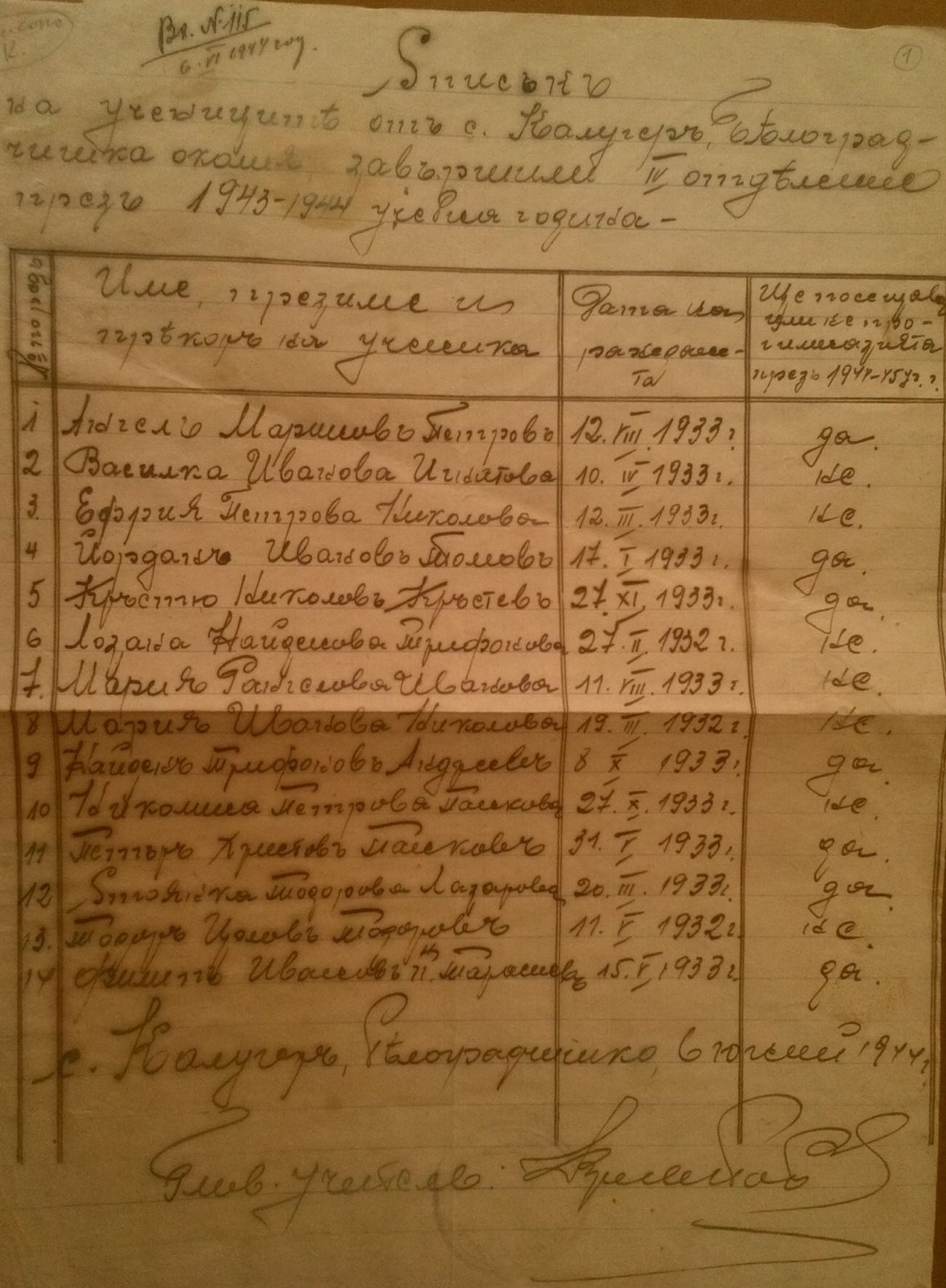 Ще посещава ли прогимназията в село Бела през 1945 година.