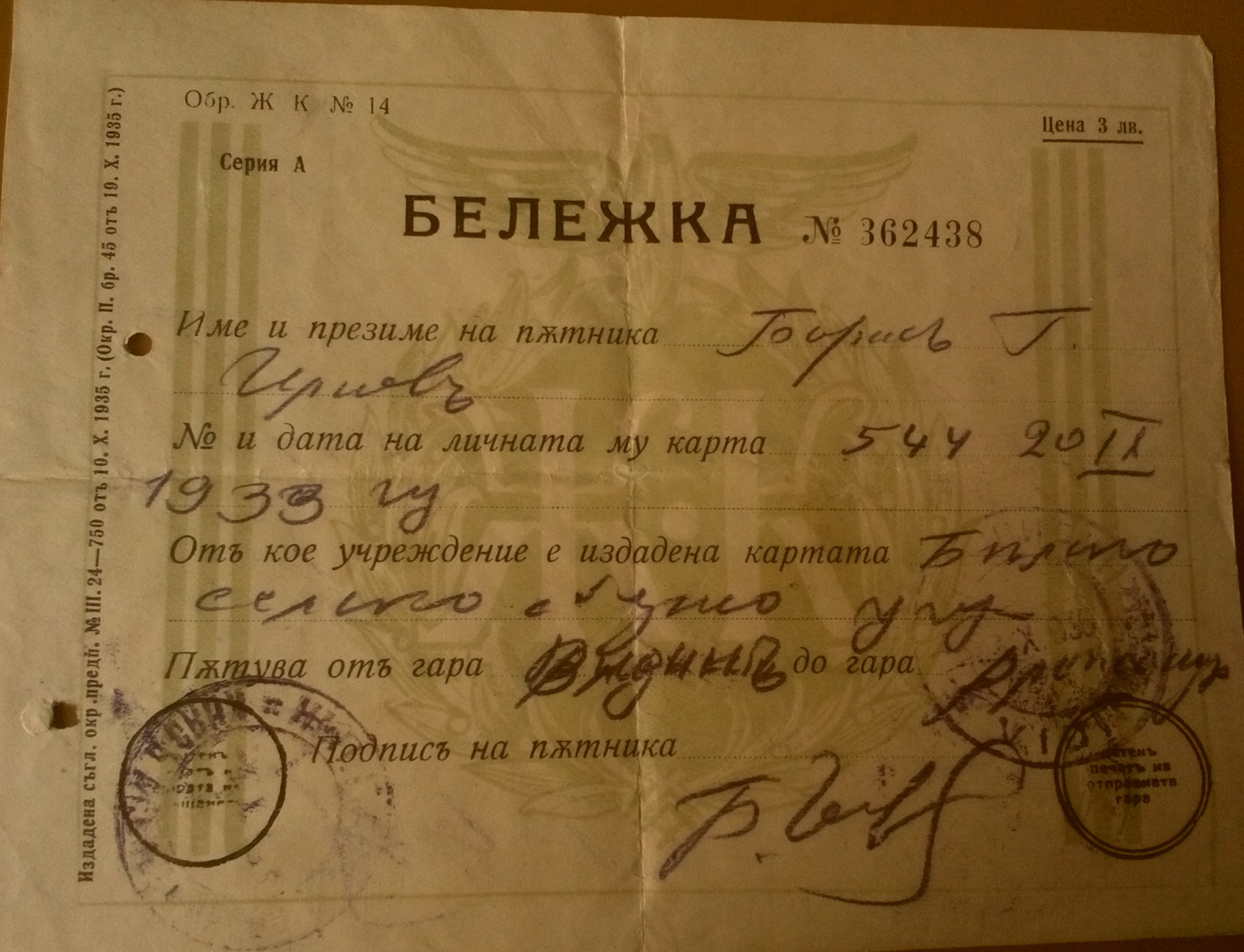 1 Response to 1936 год. 20.Септември – Бележка за пътуване с БДЖ издадена от Белското Селско Общинско Управление.
