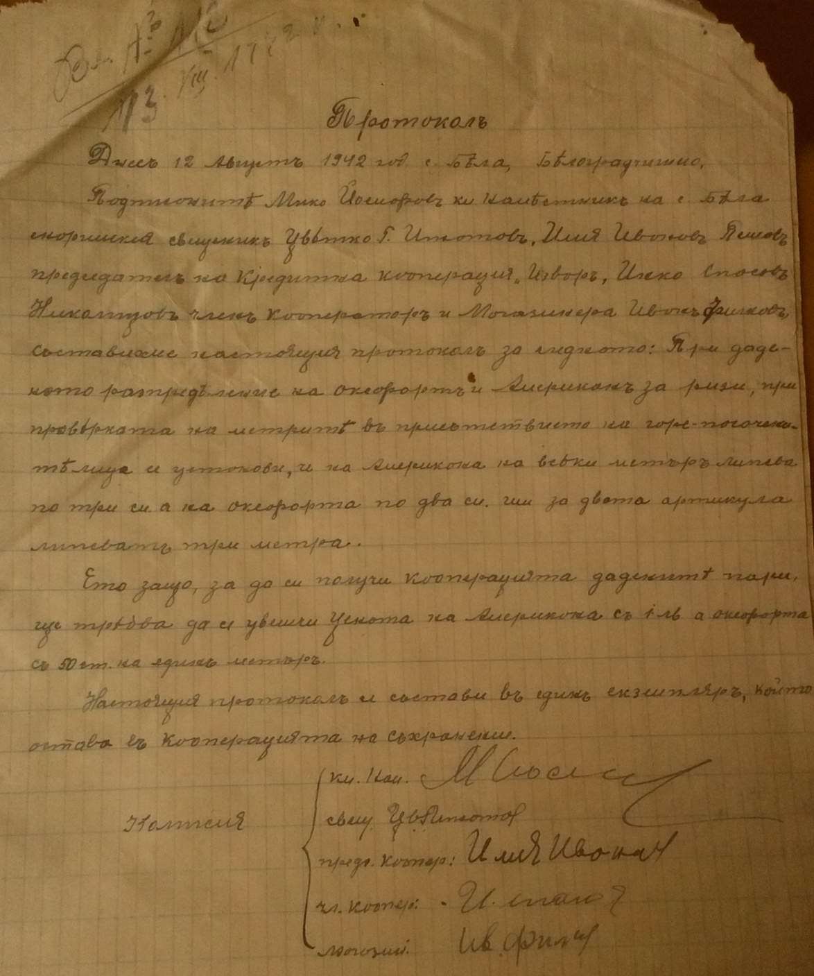 Подписаният Мико Йосимов, кметски наместник на село Бела …….