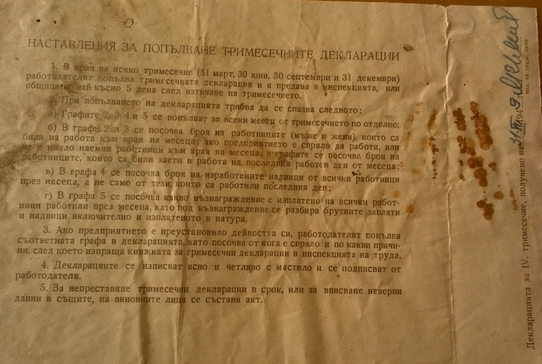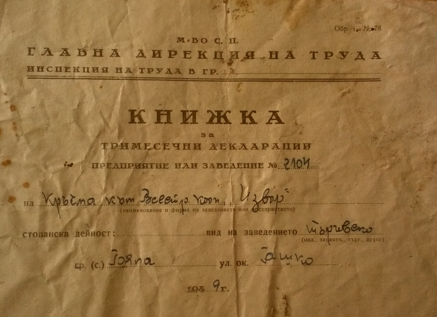 Книжка за тримесечни деклараций на кръчма към Всестранна Кооперация „ИЗВОР“