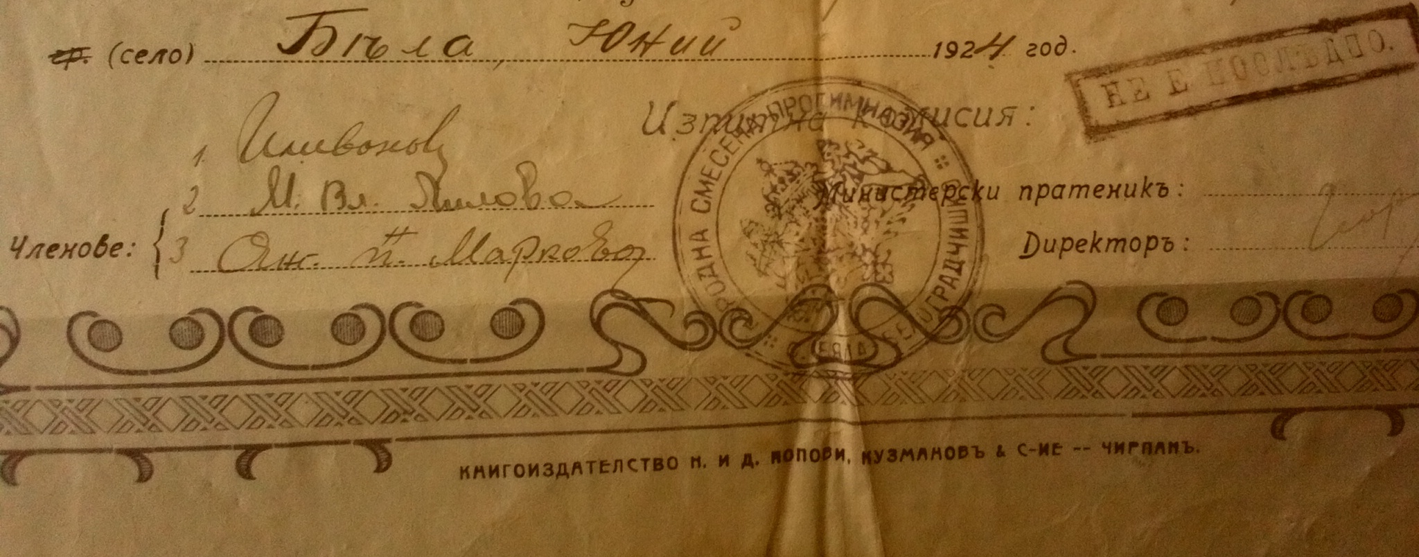 Забележка: Самото свидетелство е отпечатано в Книгоиздателство П.И.Д. Попови, Кузмановъ & Сие – Чирпан
