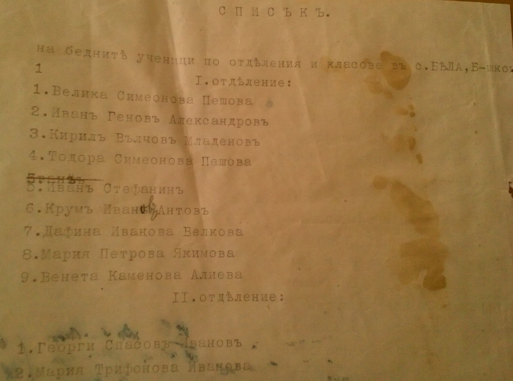 Второ отделение: