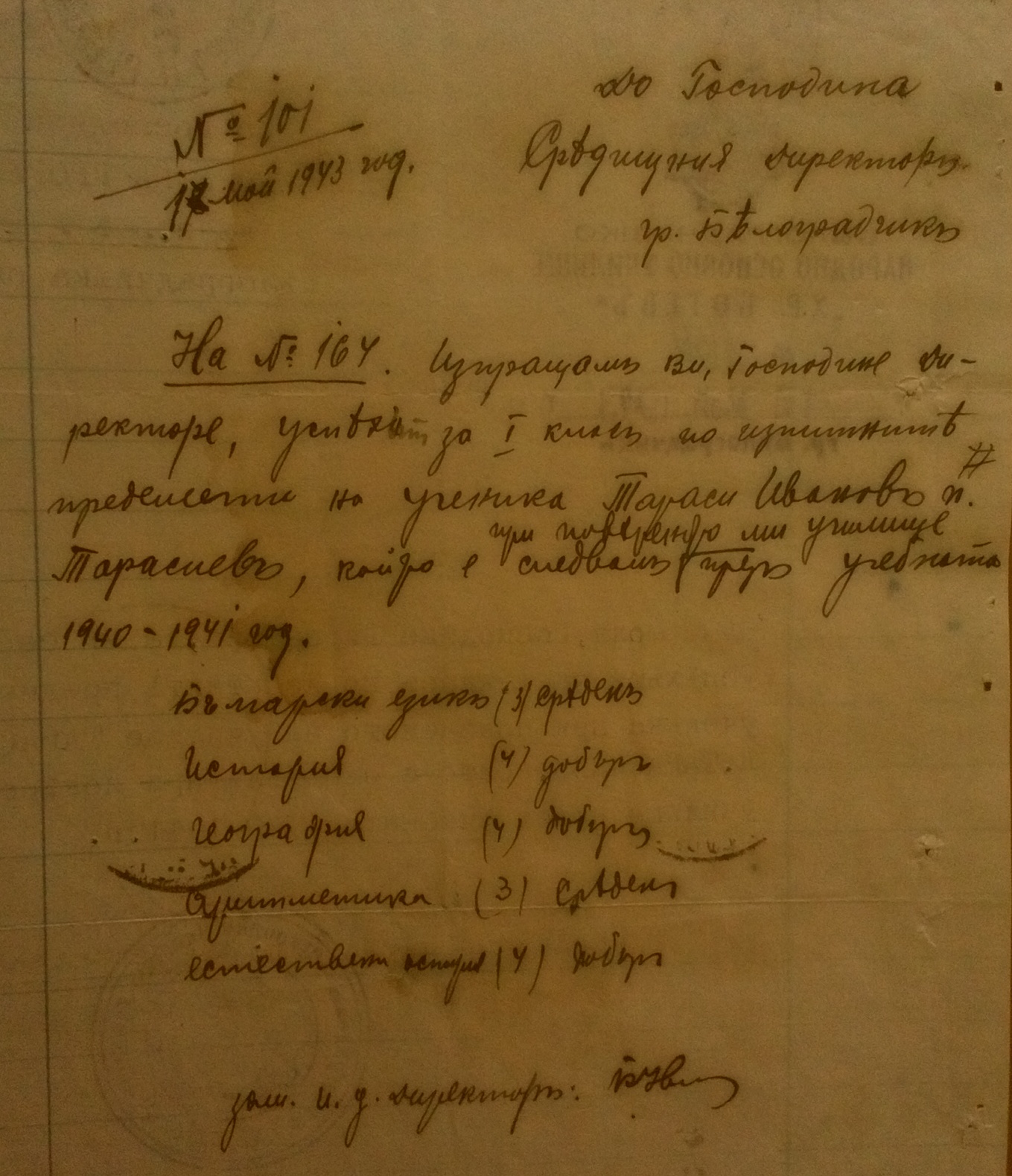 Ученика Тараси Иванов поп Тарасиев е следвал през учебната 1940 / 41г. в Прогимназията в село Бела.