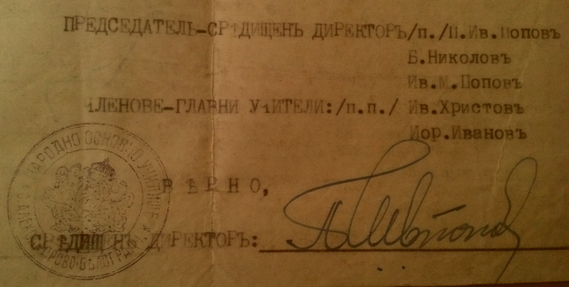 Председател – Средищен Директор: / П / П.Ив.Попов (Петър Иванов Попов) с.Княз Александрово