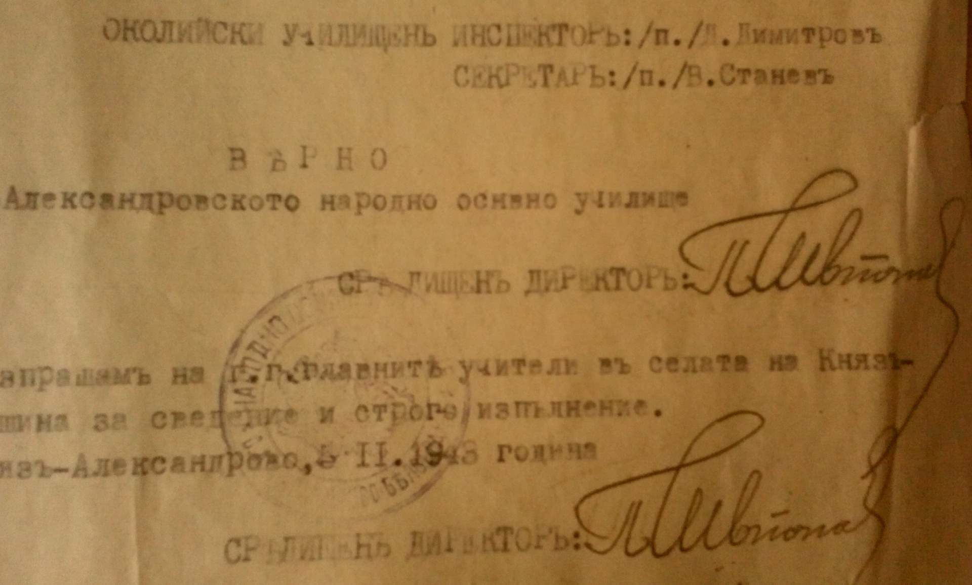 Средищен Директор, Княз Александрово: /П/ Петър Иванов