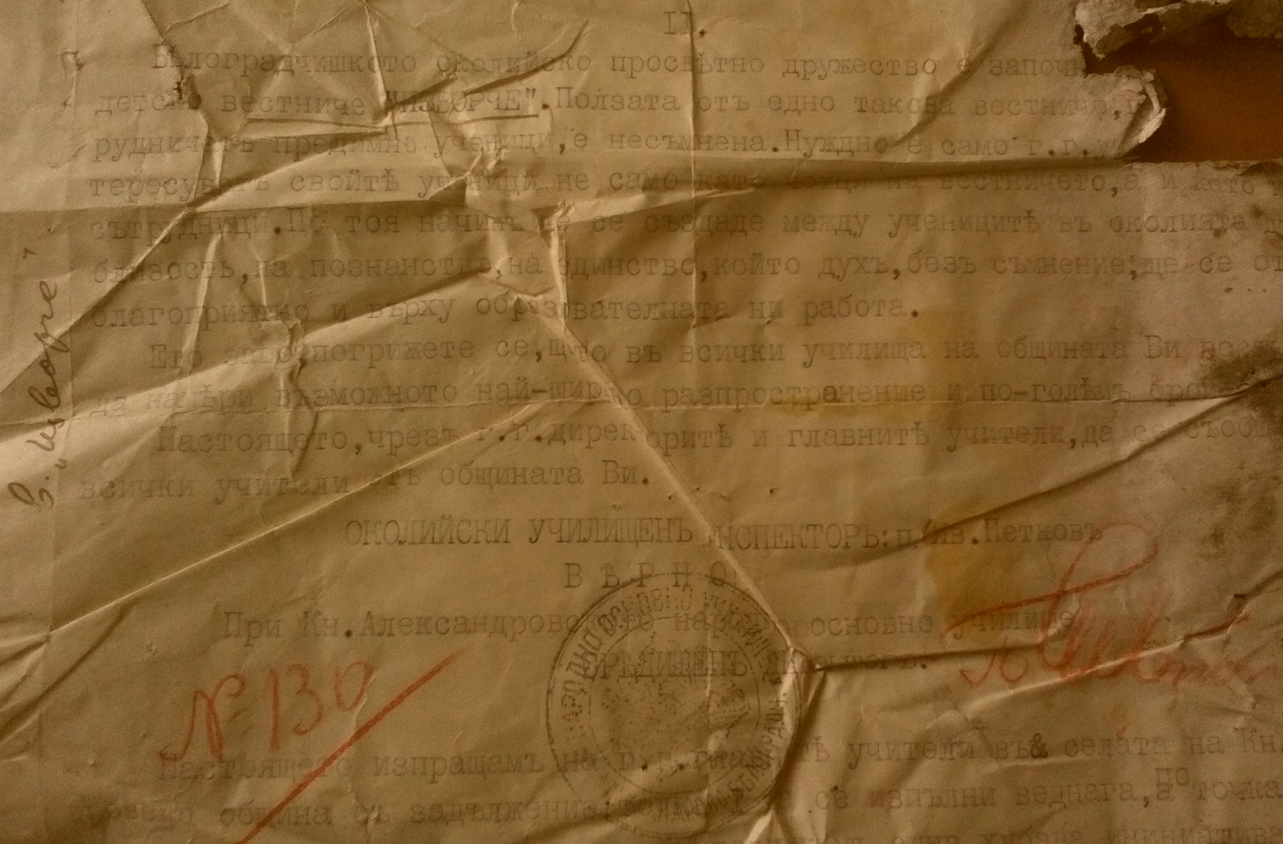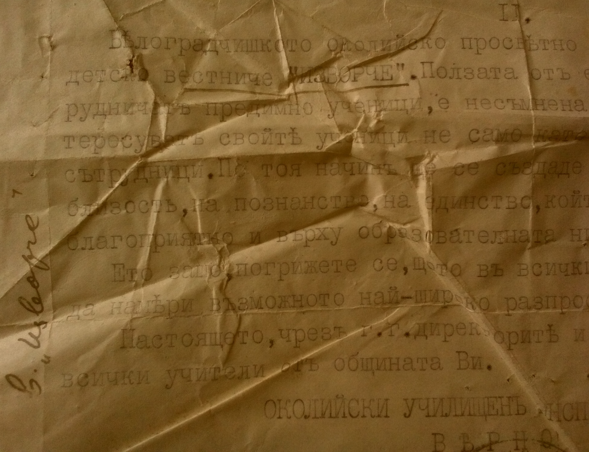 Белоградчишкото Околийско Просветно дружество е започнало …. (не се чете) детско вестниче „ИЗВОР“. Ползата от едно такова вестниче, където да сътрудничат предимно ученици е несъмнена. Нужно е само г.г учителите да заинтересуват свойте ученици, не само като четци но и сътрудници. По този нзчин да се създаде между учениците в околията дух на близост, на познанство, на единство, който дух, без съмнение, ще се отрази благоприятно и върху образователната ни работа. Ето защо погрижете се, щото във всички училища на общината Ви встничето да намери възможно най-широко разпространение и по-голям брой сътрудници.