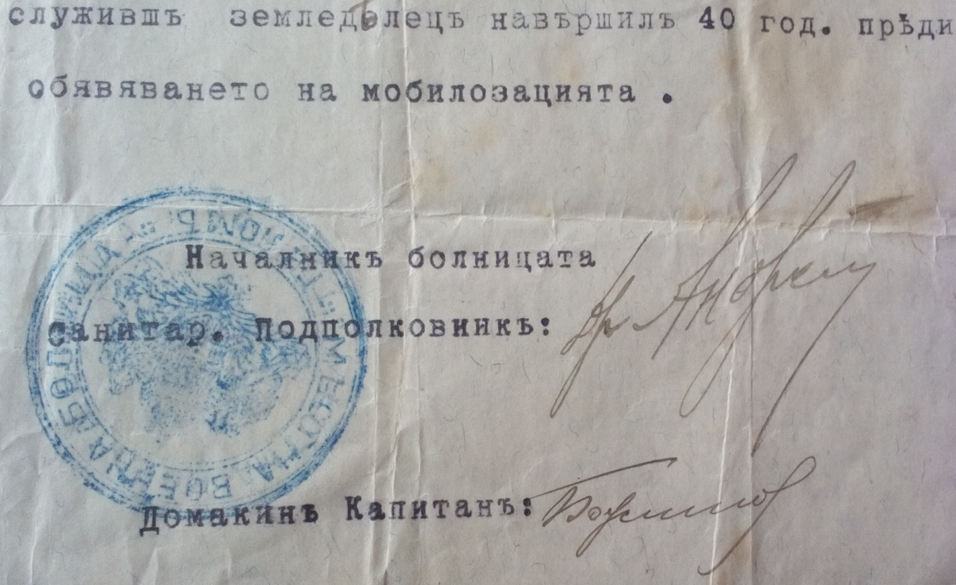 Началник болница Санит.Полковник: /П/