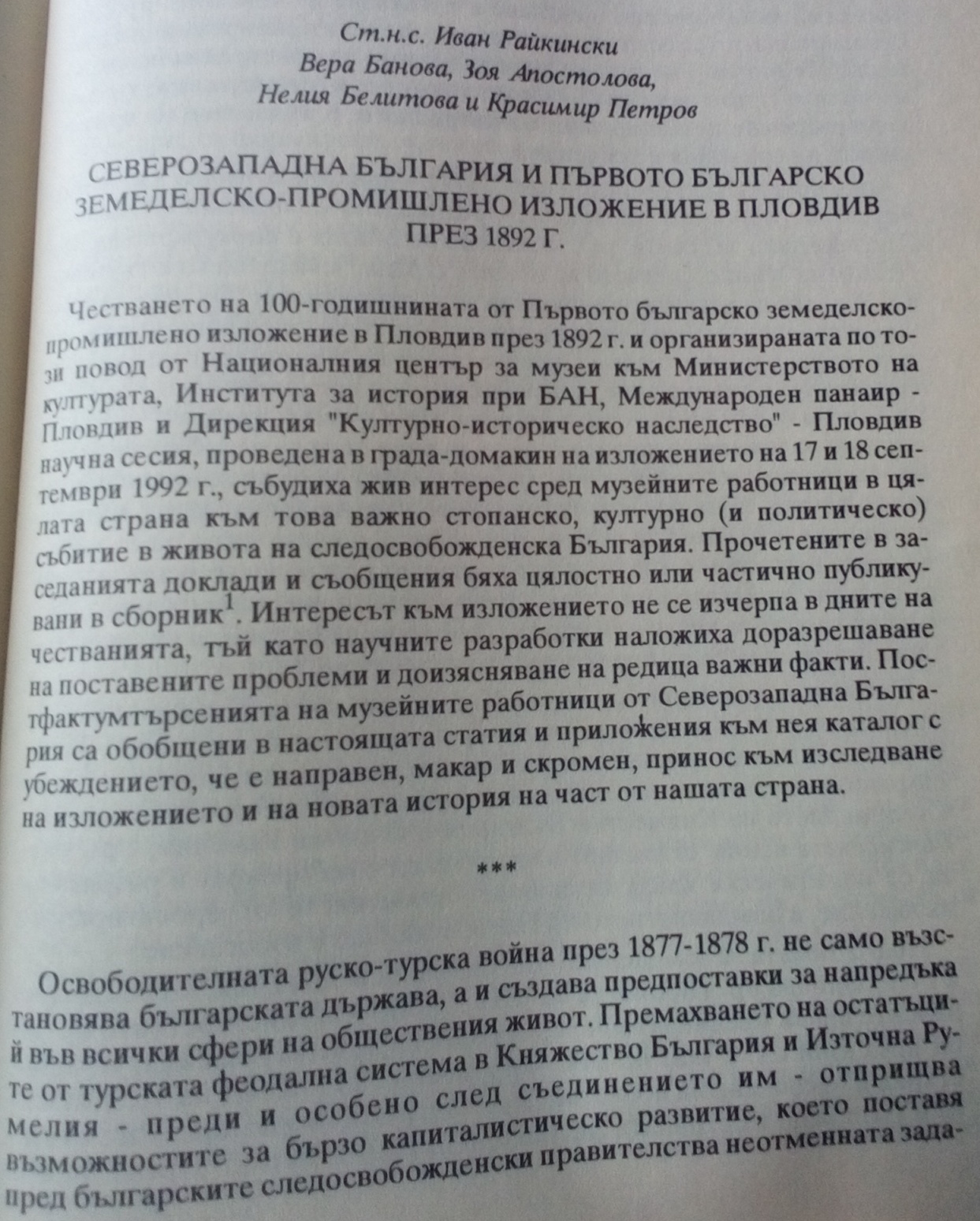 СЕВЕРОЗАПАДНА БЪЛГАРИЯ И ПЪРВОТО БЪЛГАРСКО ЗЕМЕДЕЛСКО-ПРОМИШЛЕНО ИЗЛОЖЕНИЕ В ПЛОВДИВ ПРЕЗ 1892 ГОДИНА