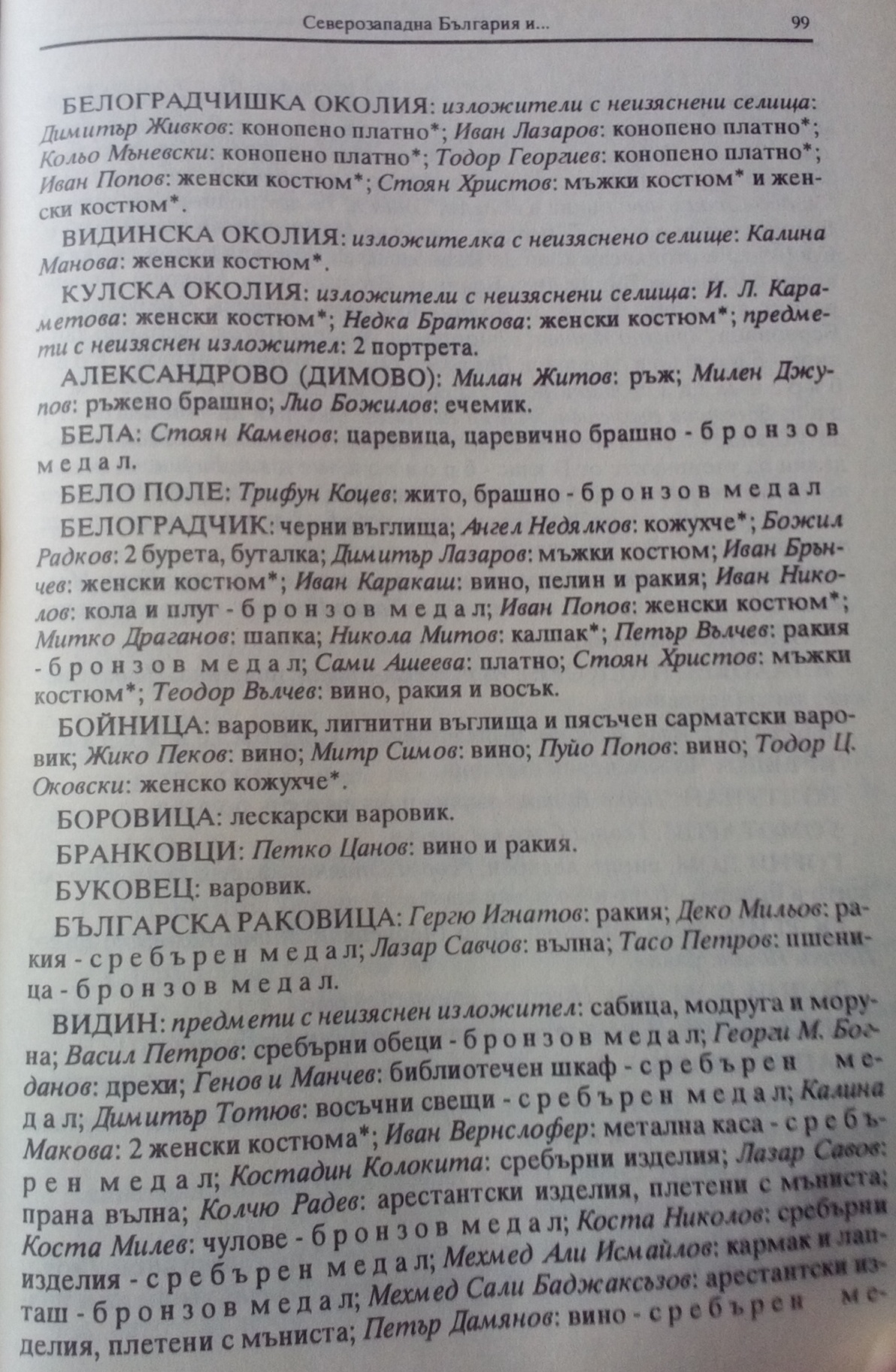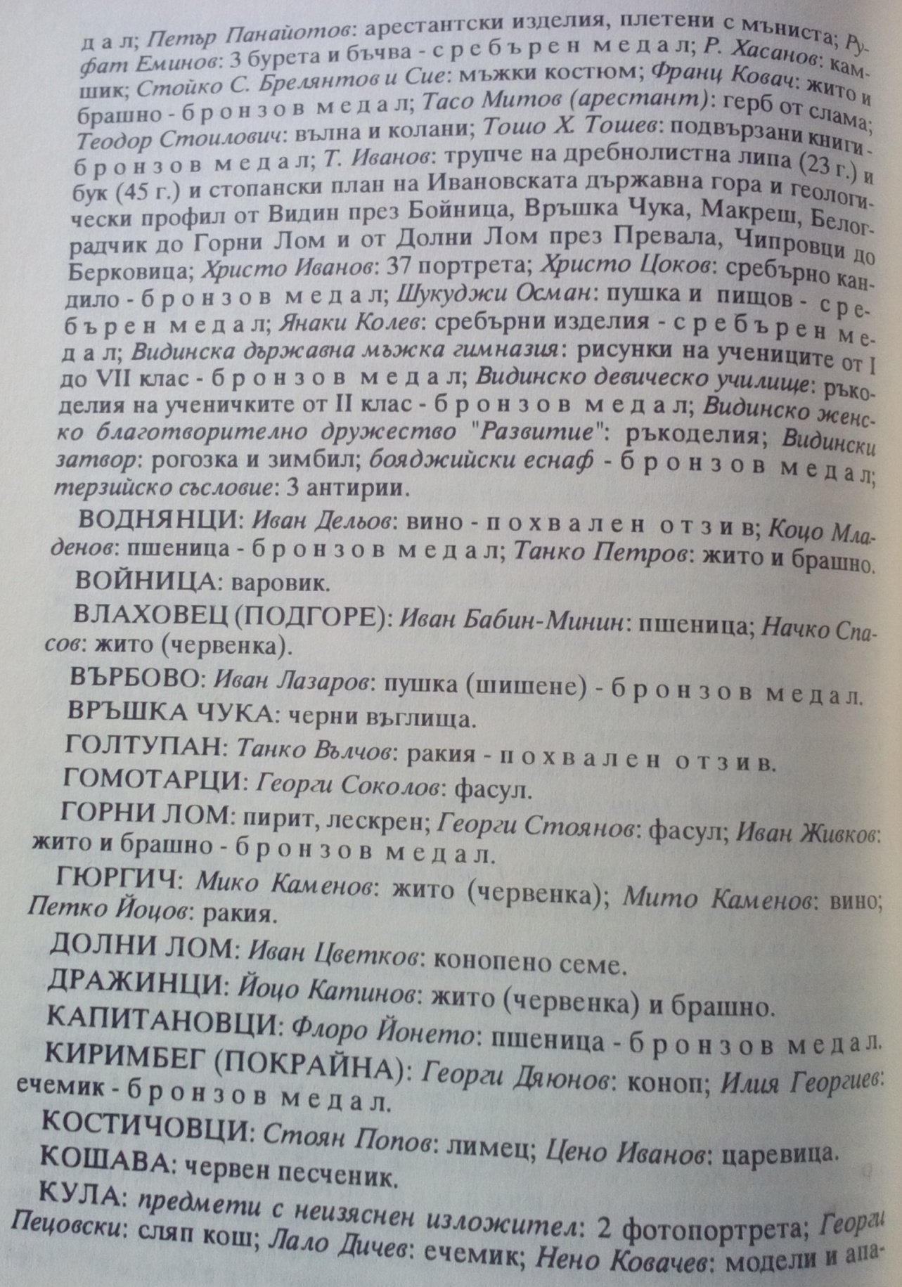 Каталог на Участниците от Северозападна Булгария в Първото Българско Земеделско-Промишлено Изложение в Пловдив през 1892 година.