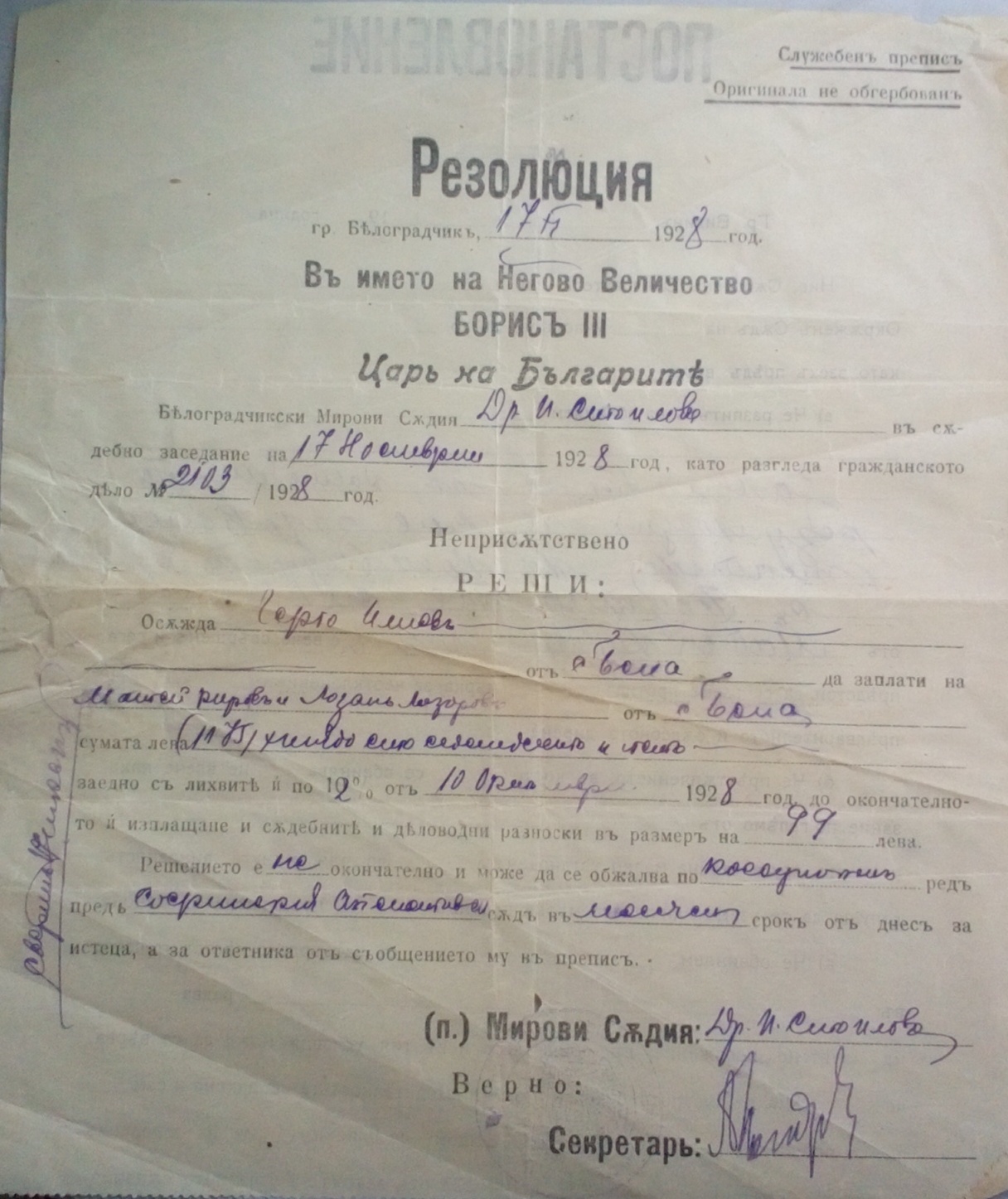 гр.Белоградчик 11.17.1928 г.