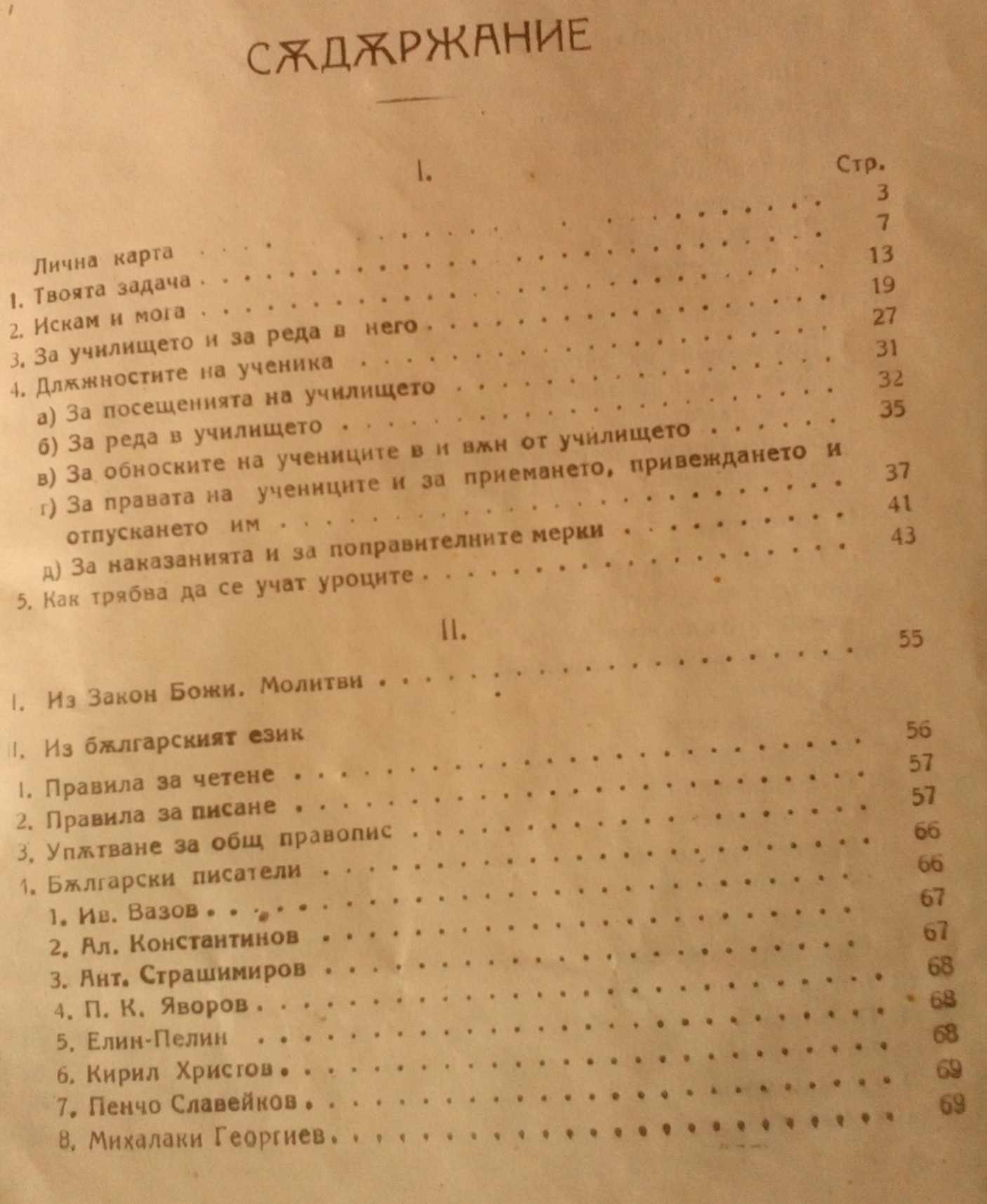 Цялата Книжка се състои от три Раздела