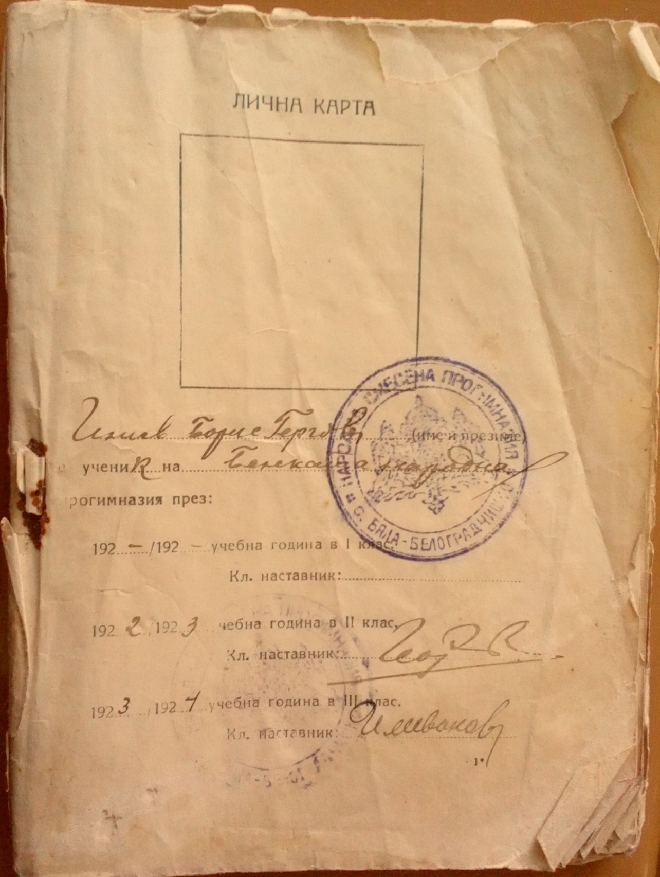 Илиев Борис Гергов е ученик на Белската Народна Прогимназия през ……