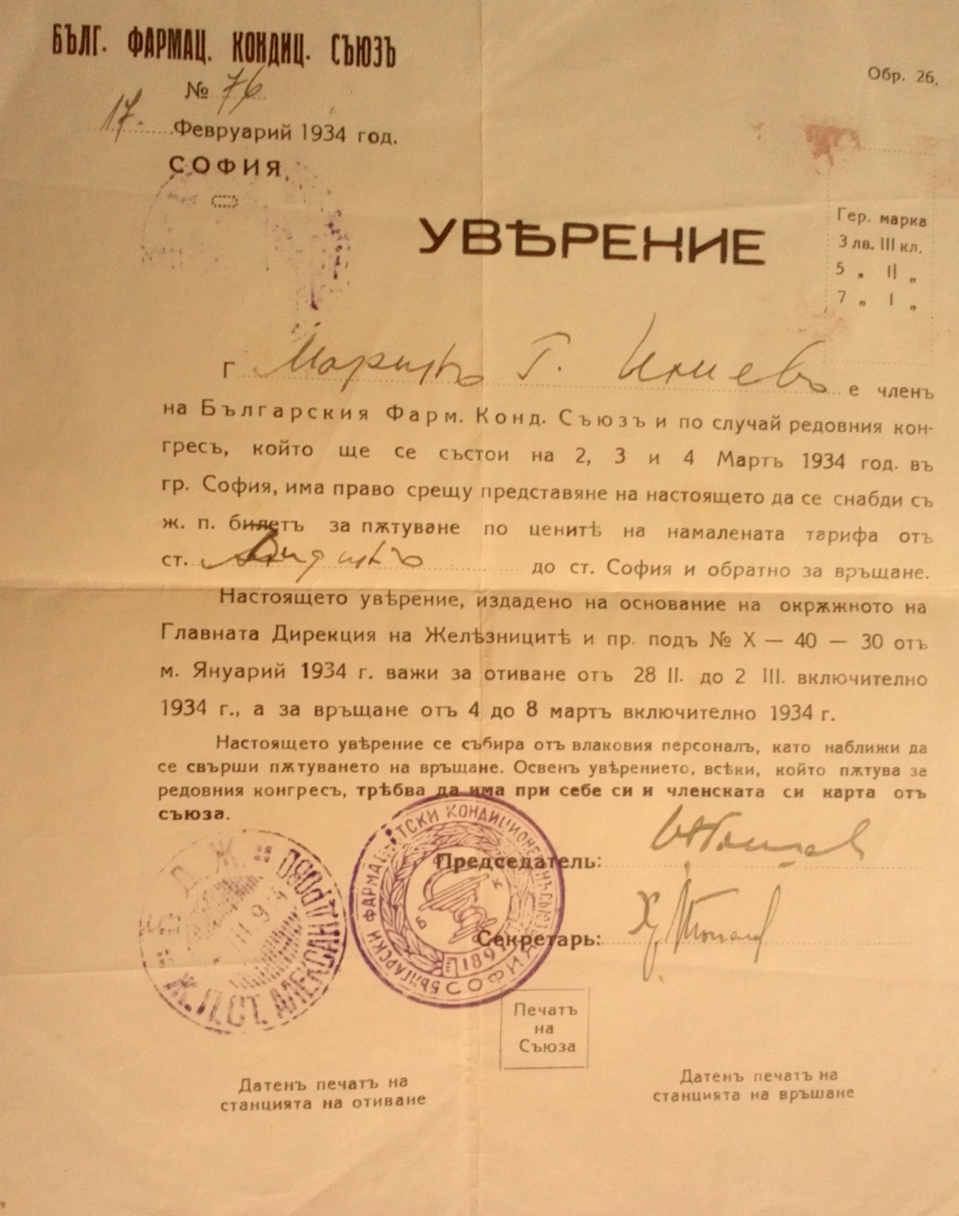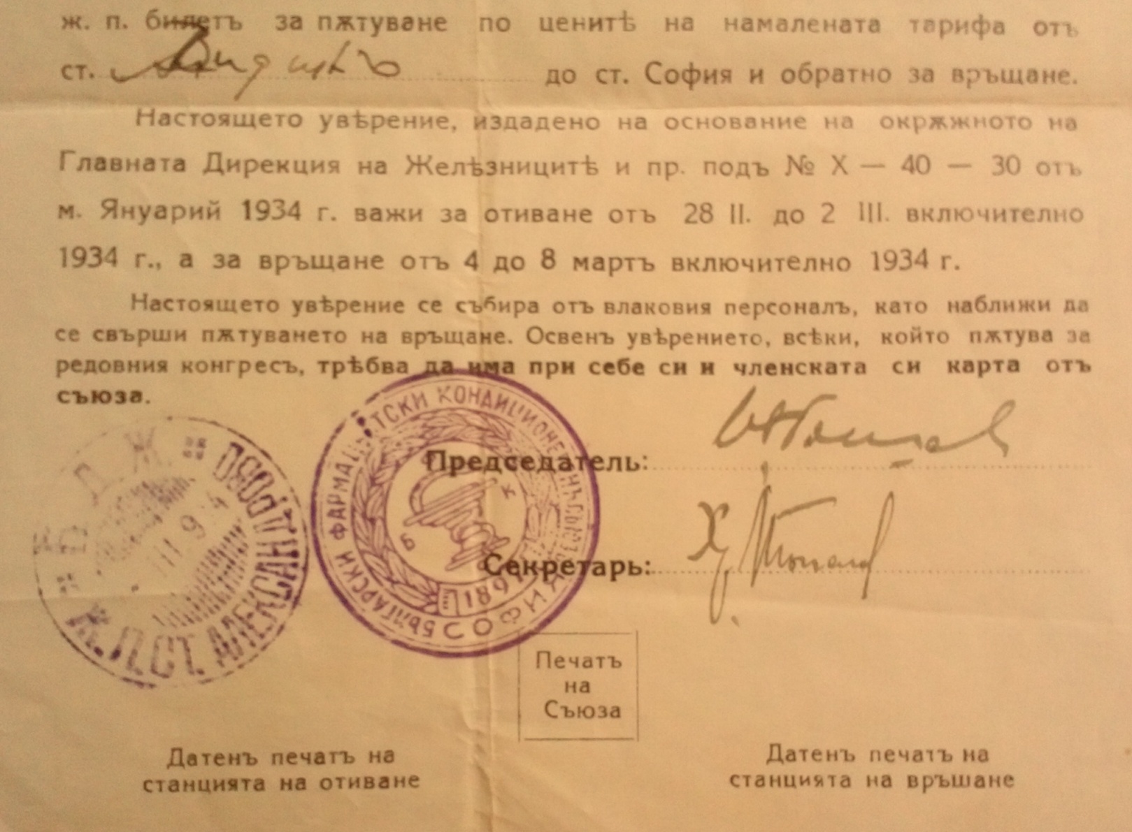 По случай редовния конгрес на 2,3, и 4 Март 1934 г.