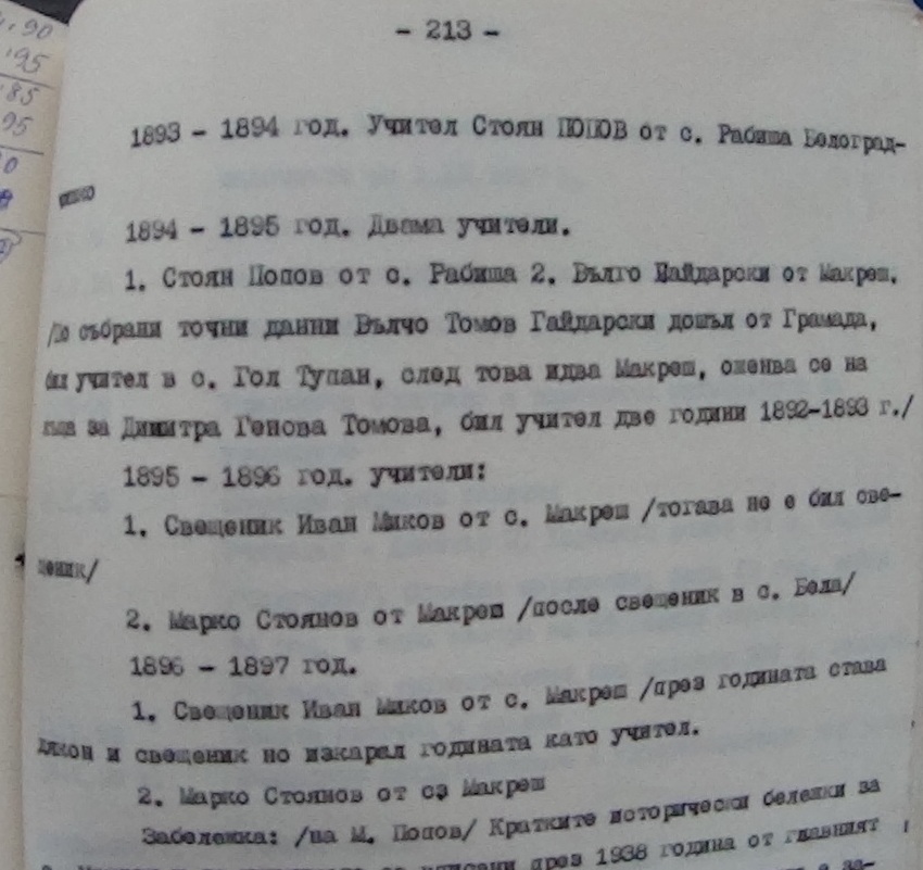 + 1894/95 г. двама учители – Стоян Попов и Вълчо Томов Гайдарски от Грамада