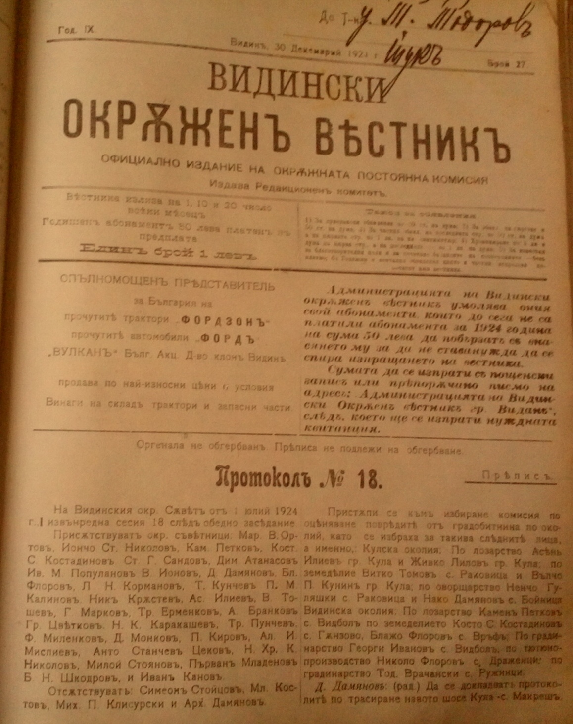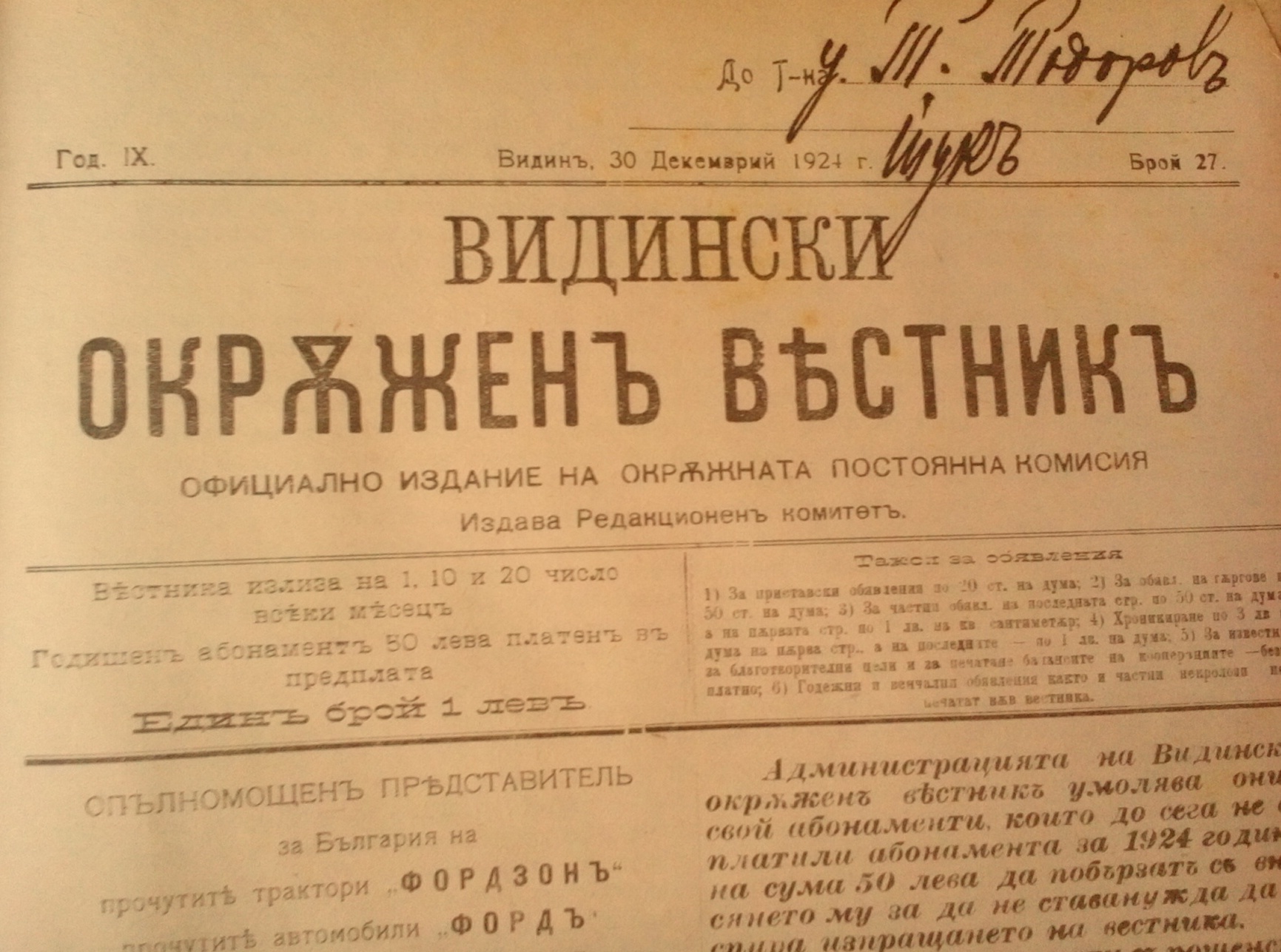 ВИДИНСКИ ОКРЪЖЕН ВЕСТНИК