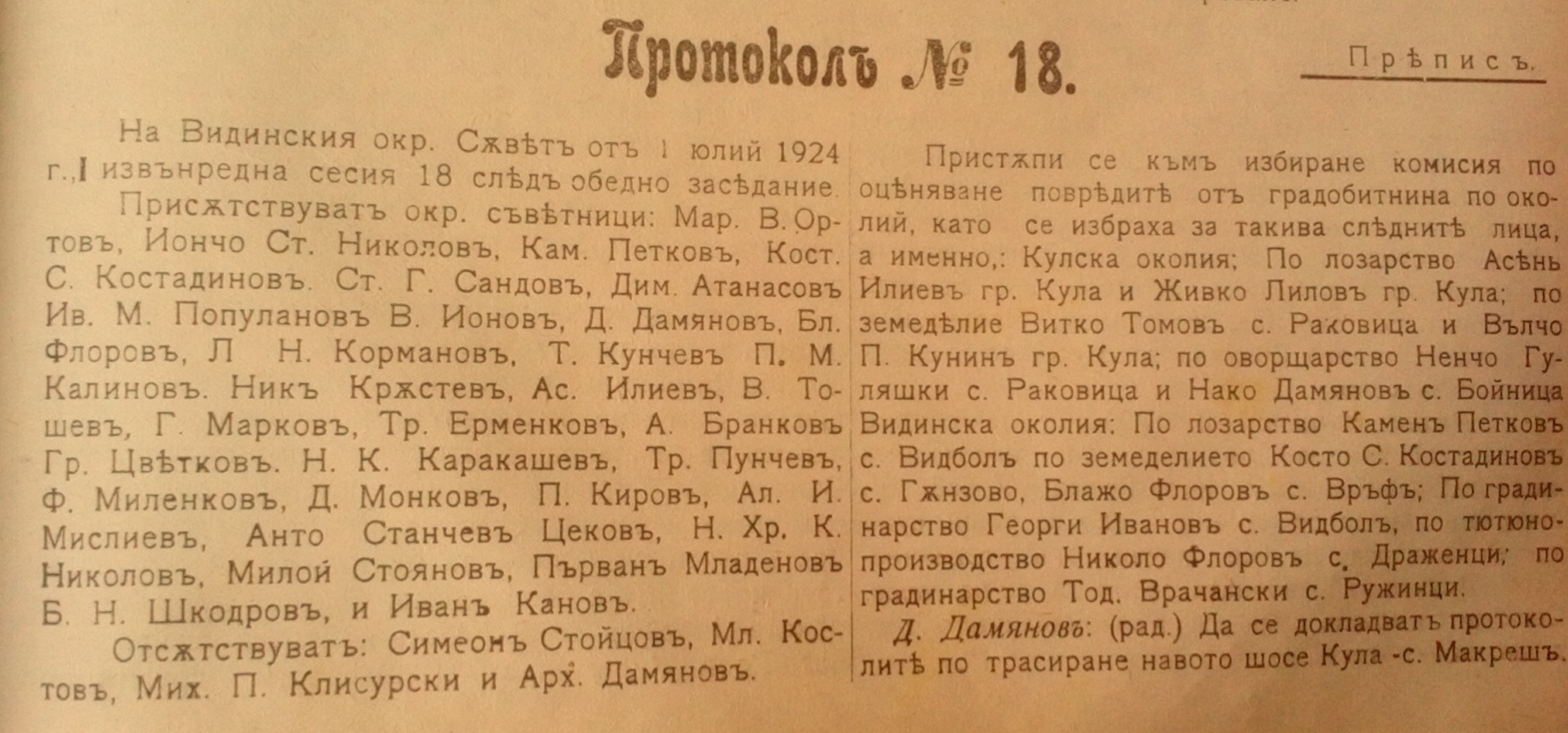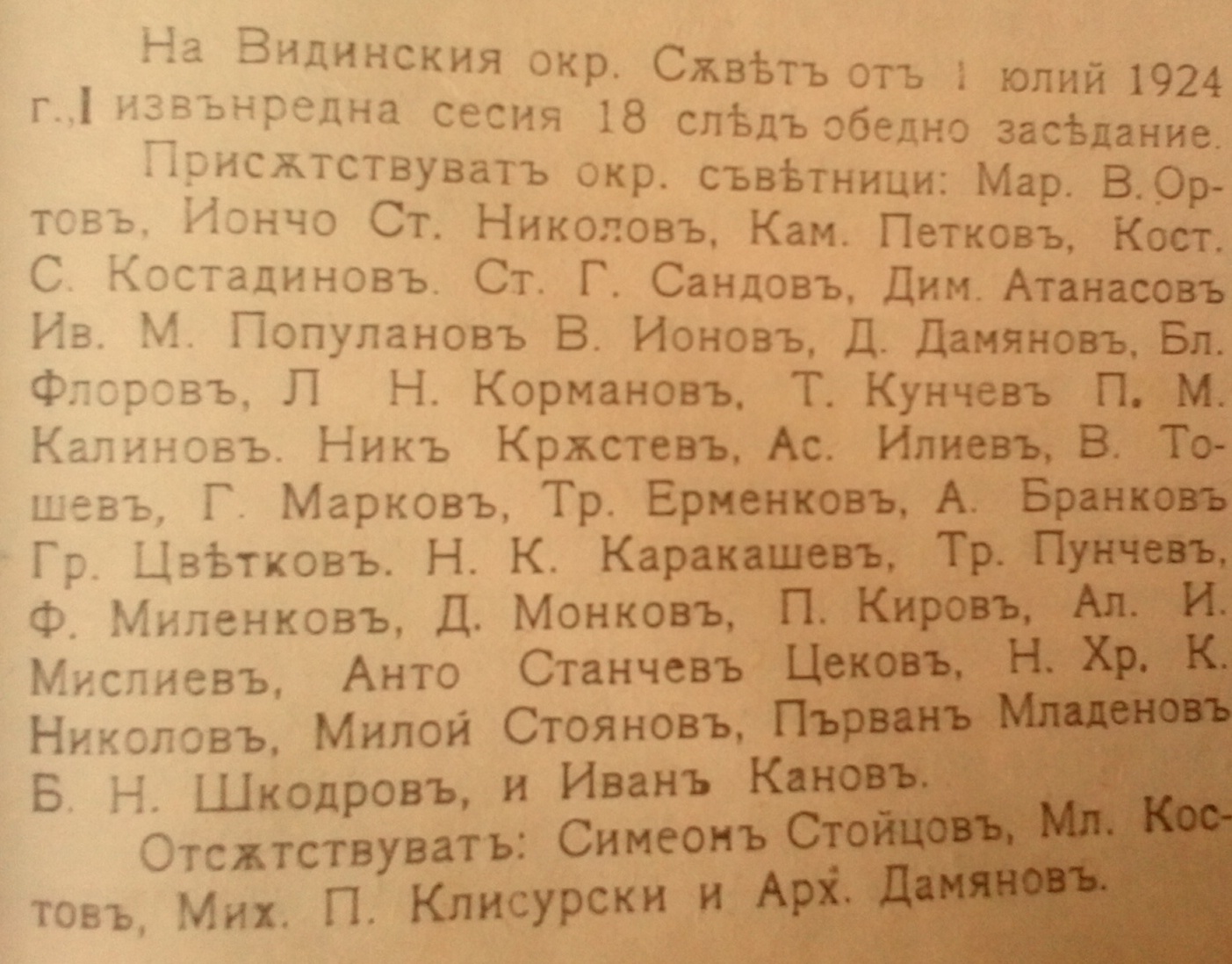 Извънредна сесия 01.07.1924 година.