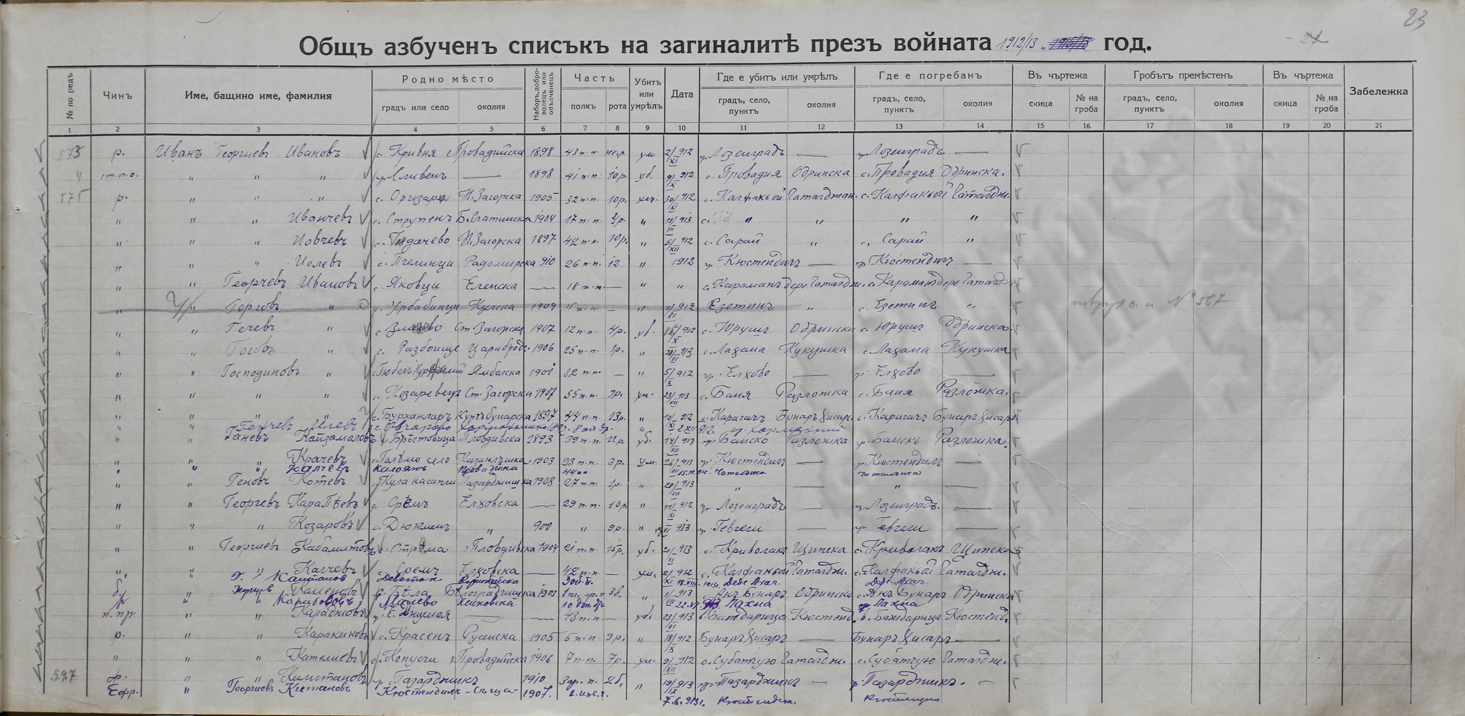 Бомбиер Иван Георгиев Каменов е роден в село Бела, набор 1903 година, служил в Първи Планински Артилерийски полк, 3-та батарея, починал в село Ак бунар, околия Одринска, погребан е в село Ак бунар на 01.07.1913 година.