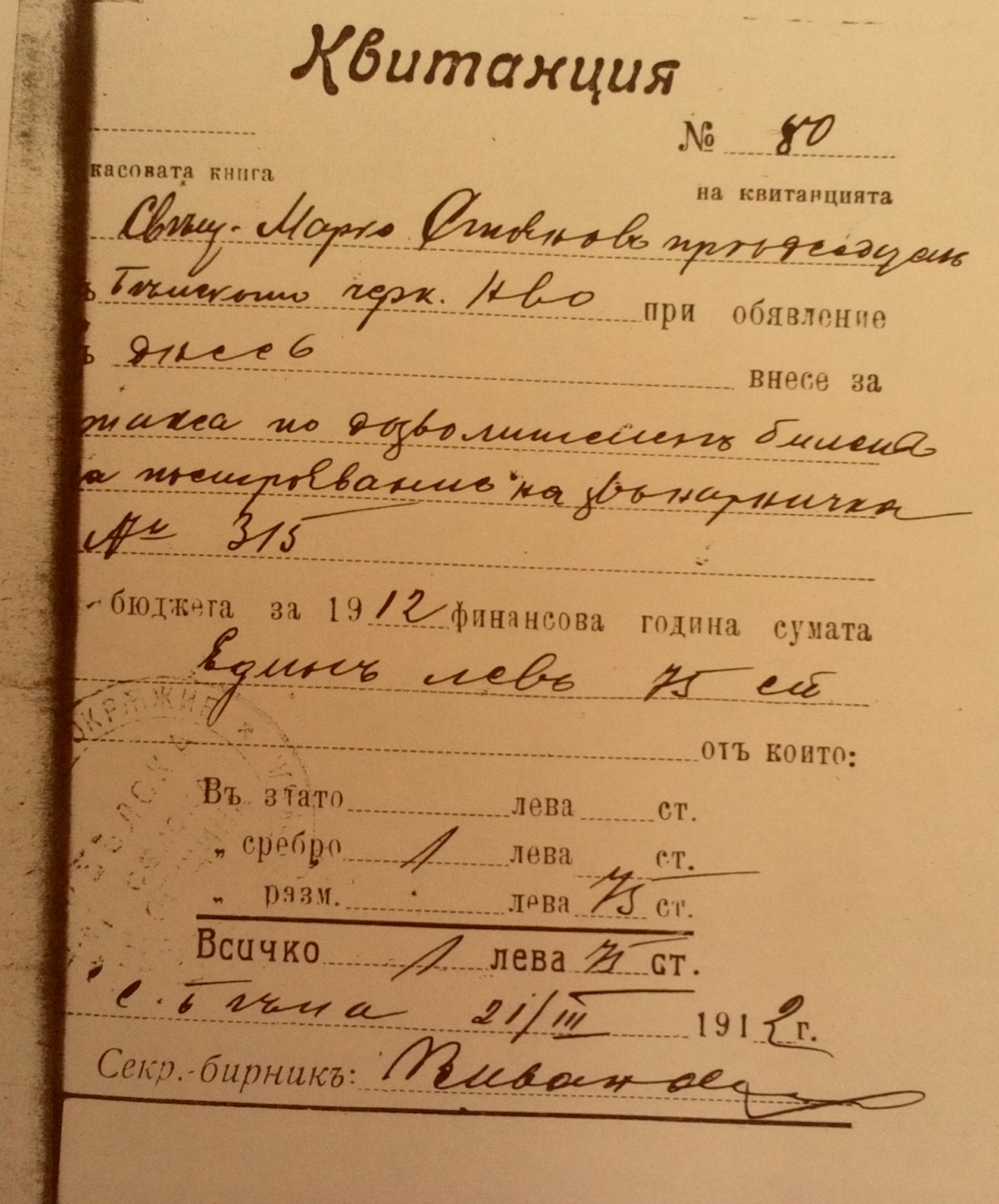 Секретар-бирник /П/ Васил Иванов.
