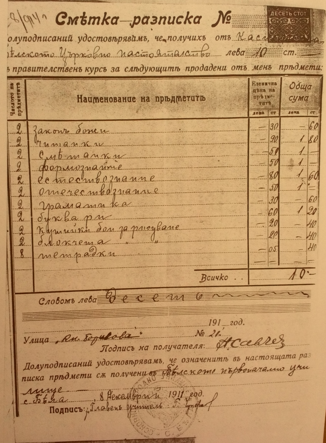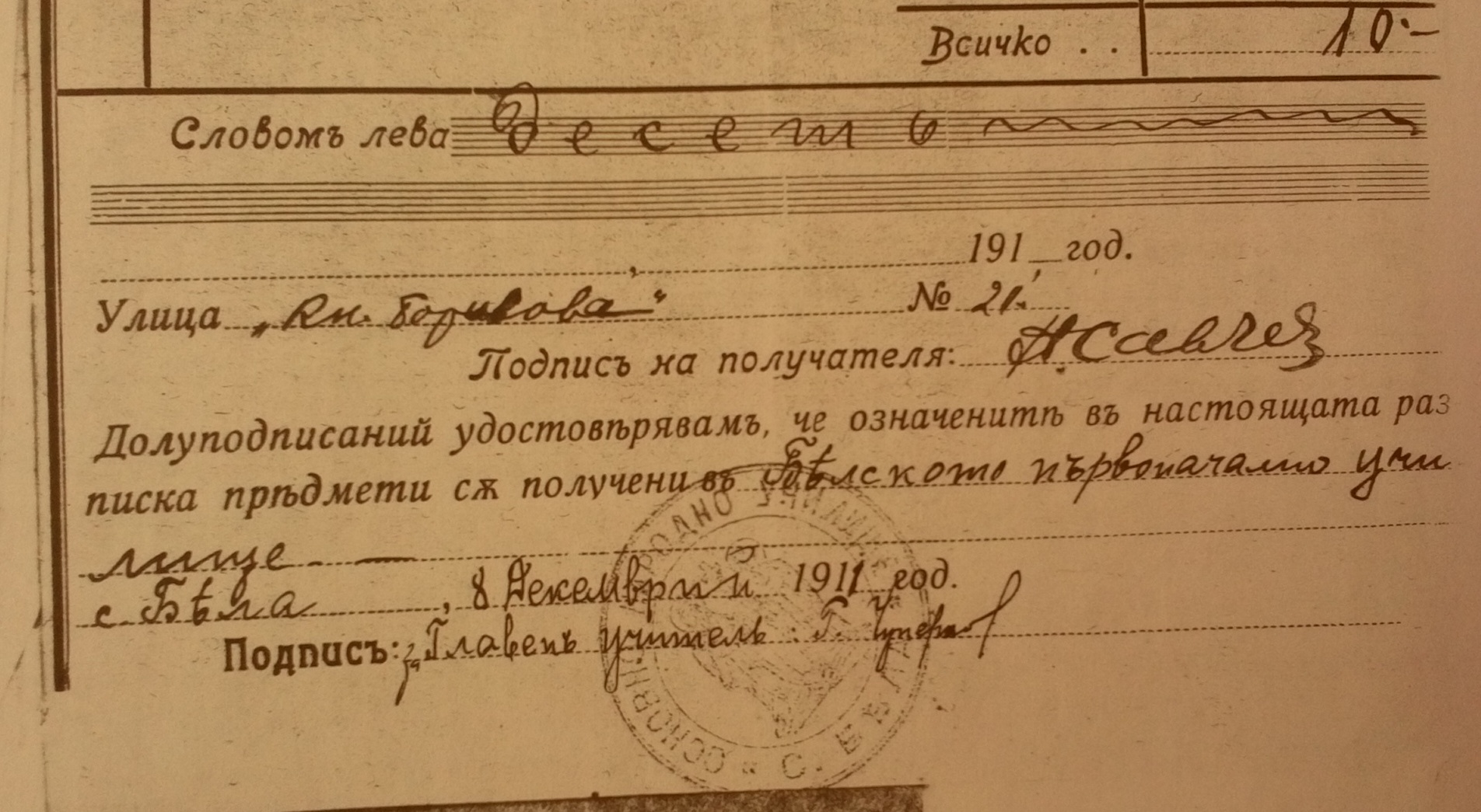 Долуподписаний, удостоверявам че получих от касиера на Белското Църковно Настоятелство…..