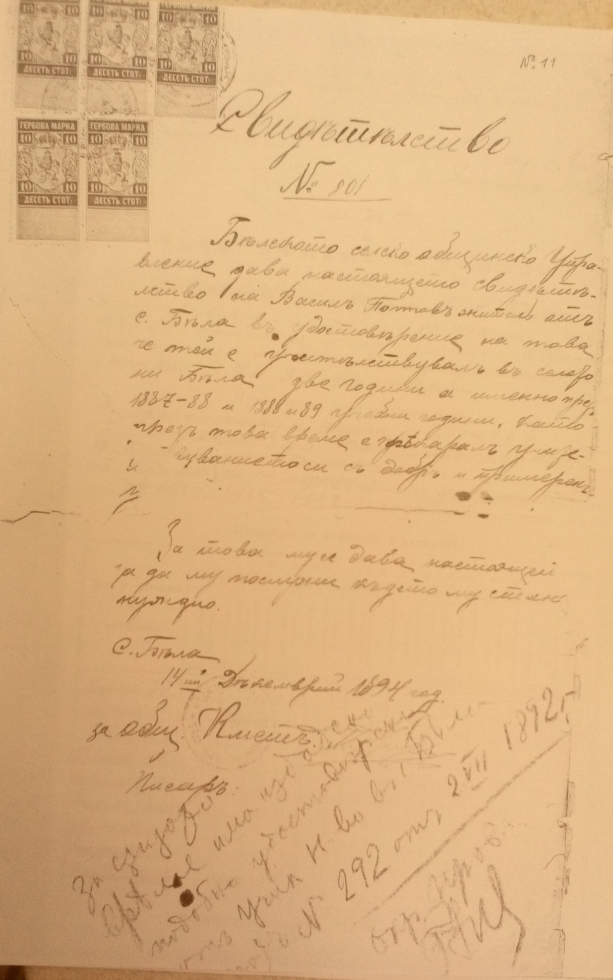 За същото време му е издадено подобно удостоверение от училищното Настоятелство в Бела под N 292 от 2.07.1892 година