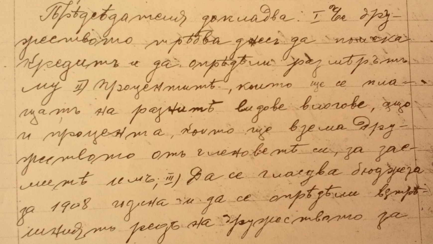 III. Да се гласува бюджета за 1908 година и да се определи вътрешниятъ редъ на дружеството за да почне да функционира правилно.