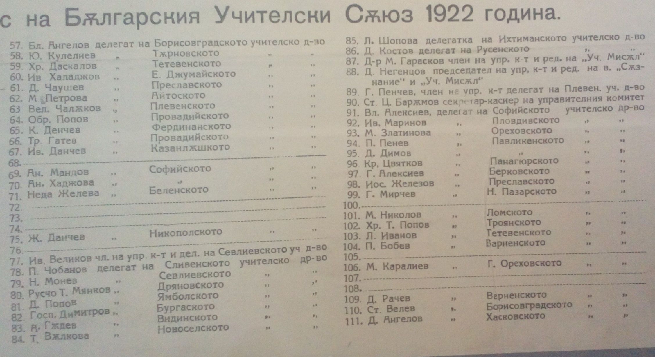 Под N 88 е Димитър Негенцов, тук вече е като представител на Управителния Комитет и редактор на вестник „Съзнание“ и в. „Уч.Мисъл“