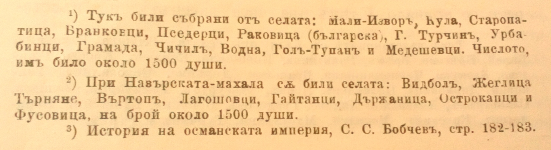 При Назърската – махала са били селата: Видбол; Жеглица; Търняне; Въртоп, Лагошевци; Гайтанци; Държаница; Острокапци и Фусовица, на брой около 1500 души.