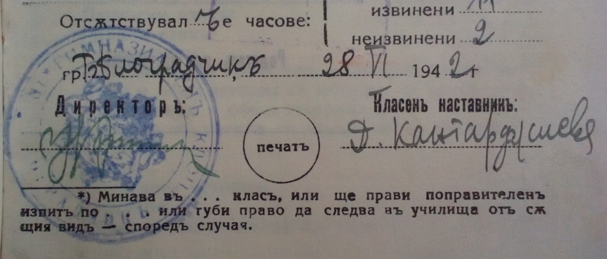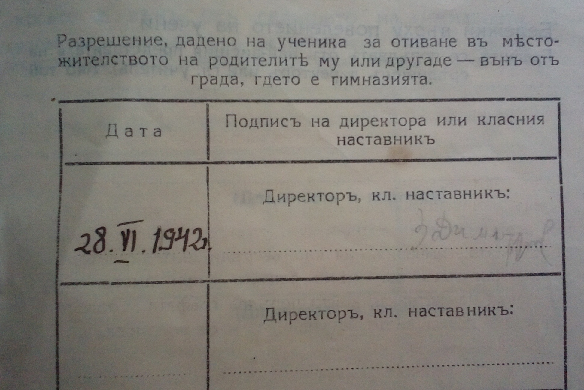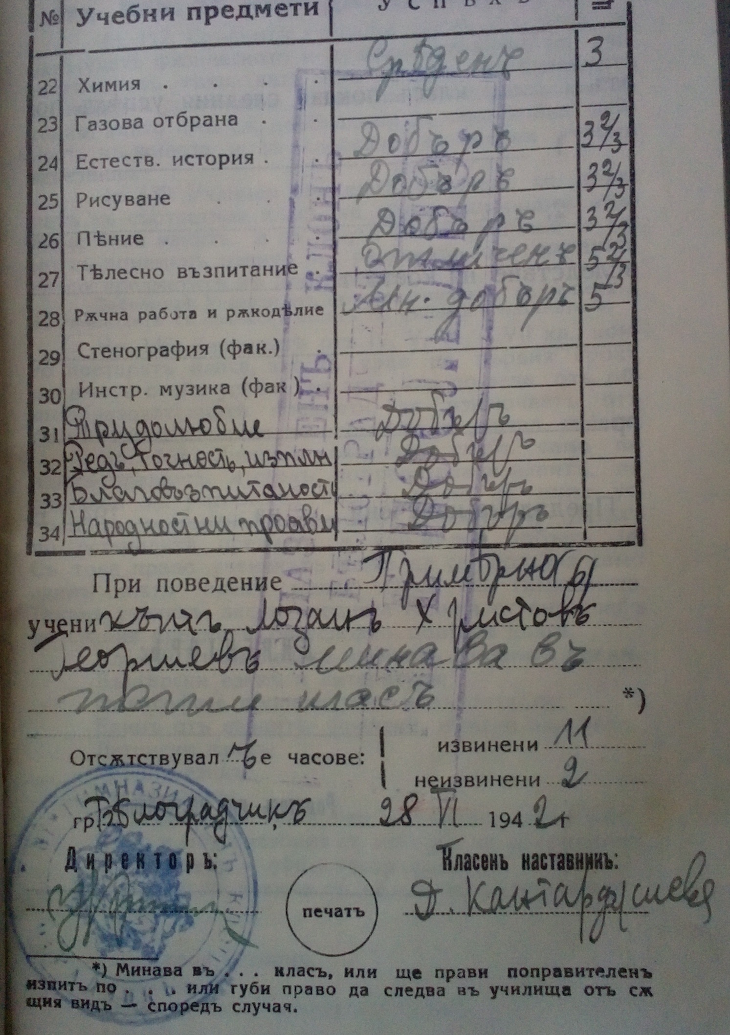 28.06.1942 г. Директор, кл. наставник: З.Димитров