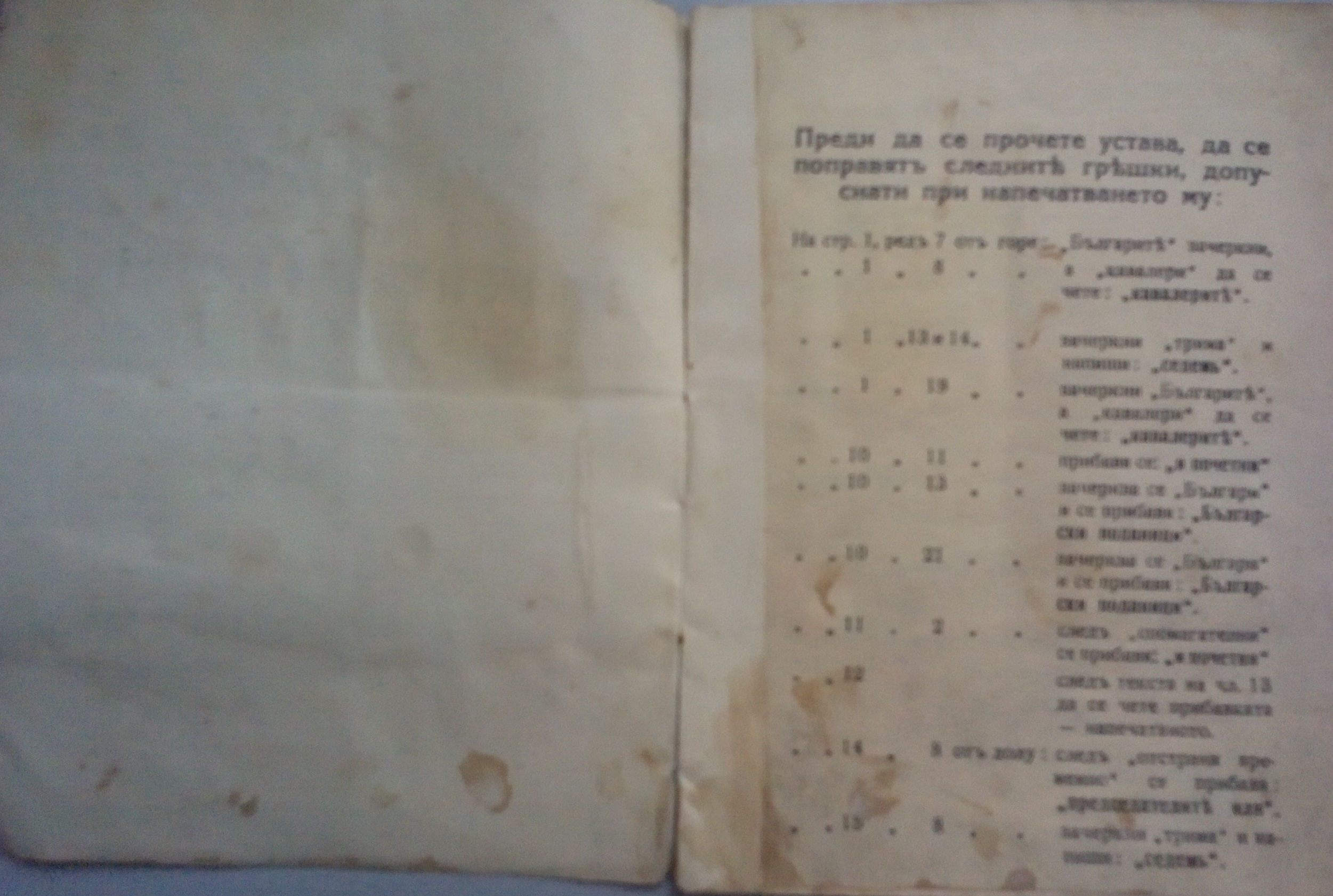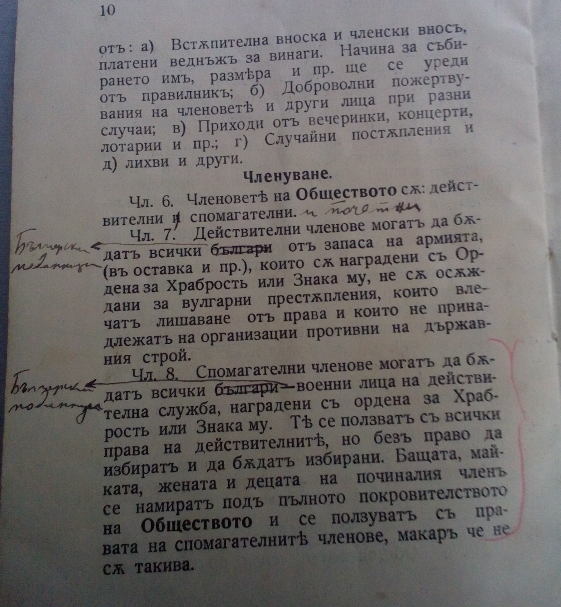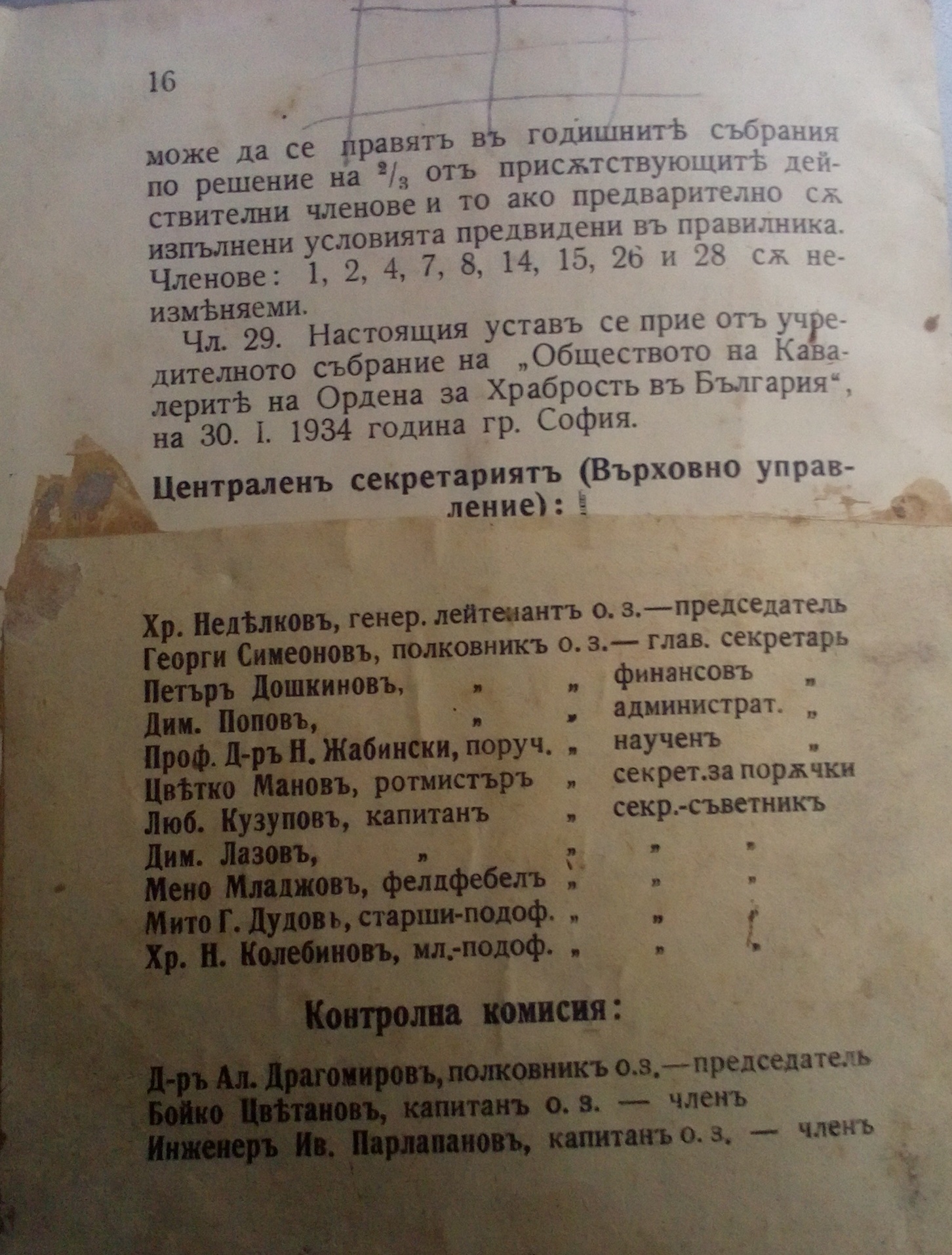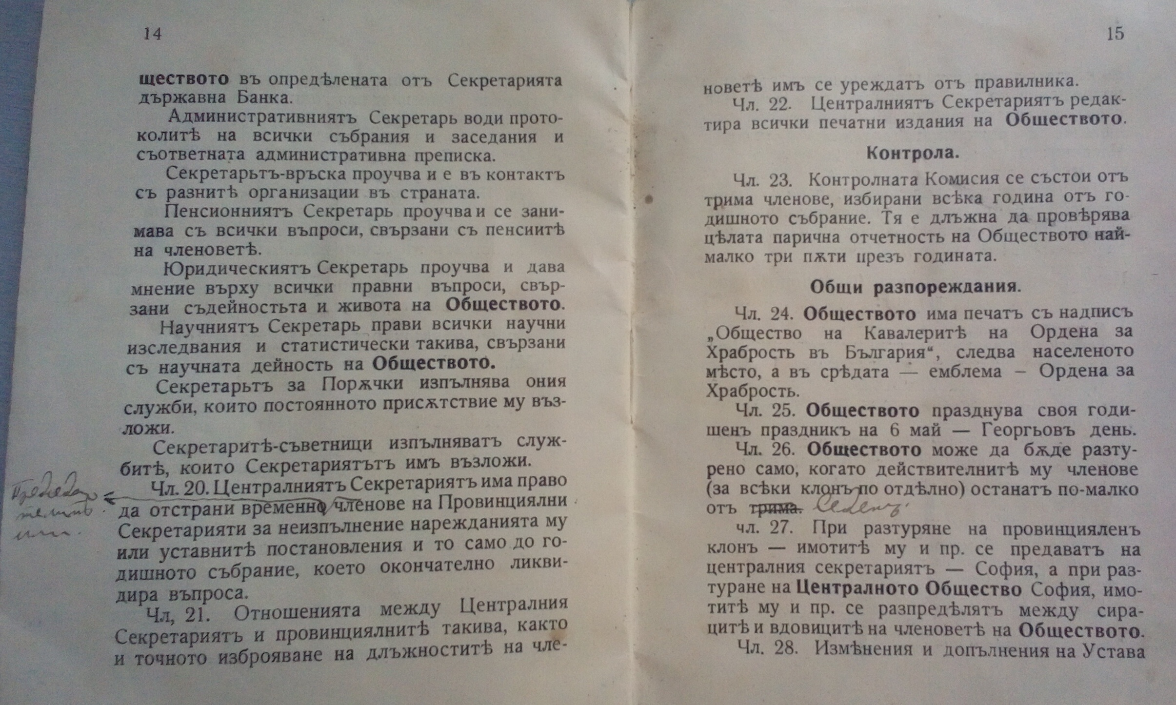 Устава е първо издание от 1934 г. и е с нанесени поправки на ръка.