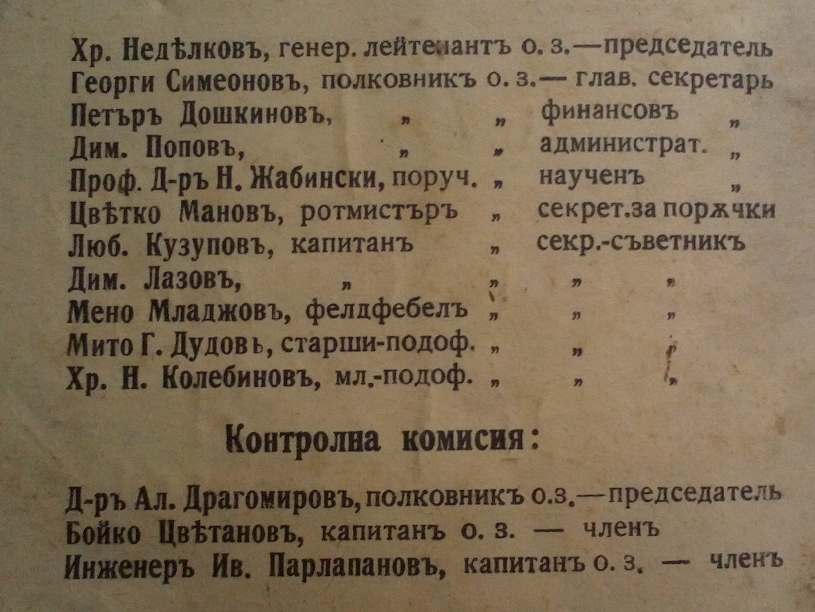 Секретар – съветник: Младши подофицер Хр. Н. Колебинов